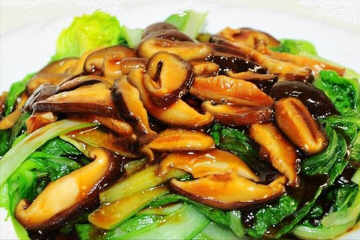青菜摘洗乾淨,瀝乾水分,香菇去掉根蒂,清洗乾淨,切成薄片,大蒜切末。鍋內倒水,燒開後下入香菇焯水後撈出來,再把青菜焯水10秒鐘後迅速撈出。起油鍋,爆香大蒜後,下入香菇翻炒,炒到斷生再把青菜倒進去,來點鹽、雞精、蠔油調味,炒勻出鍋。