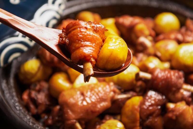 2、然後下入蔥薑蒜、八角、豆瓣醬、生抽、蠔油、老抽調味,接着往裏面添上足量的開水。大火燒開後,再來幾塊冰糖,接着小火燉上40分鐘左右。然後把板栗倒進去,繼續燉20分鐘,最後加上鹽和雞精調味,大火收汁後出鍋。