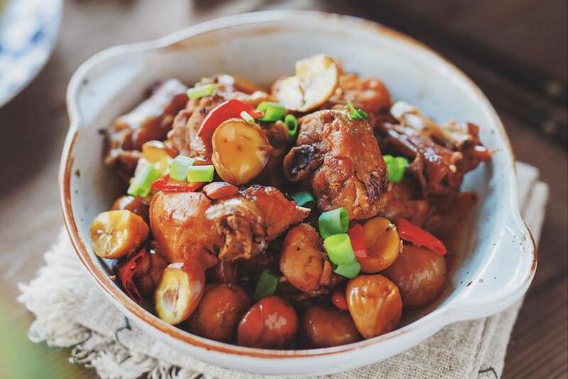 準備:板栗、雞肉、蔥薑蒜、八角、豆瓣醬、鹽、冰糖、雞精、生抽、蠔油、老抽、食用油