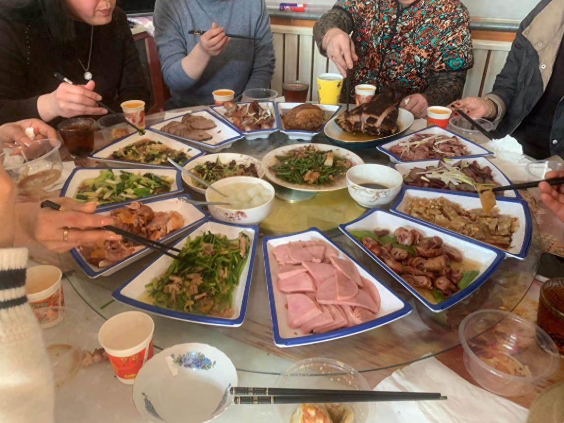大哥一家人都在城裏生活,兒孫滿堂,孩子也都很孝順。上圖是大哥一家人的年夜飯,這桌子菜一眼看上去特別的用心,葷素搭配的也挺好。我用心數了數是16個菜,有肘子、扣肉、牛肉、豬大腸剩下的就是一些素菜、涼菜,這些菜品都閤家人的口味。