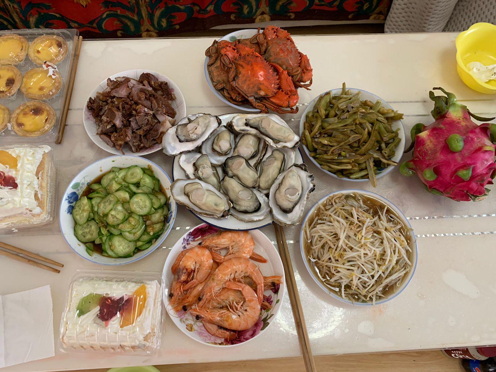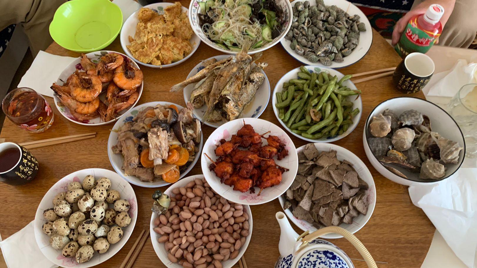 二哥一家人定居在青島,常年不在家,平時家裏有事纔回來。二哥和嫂子退休後就是在在看孫子、孫女,平時也沒有啥事。看這一桌子菜就知道住在海邊,喫海鮮比較方便,也都是一些常喫的海鮮,像大蝦、海螺、小魚都常喫,還有一個最下酒的菜就是花生米,花生米二哥最愛喫的下酒菜。
