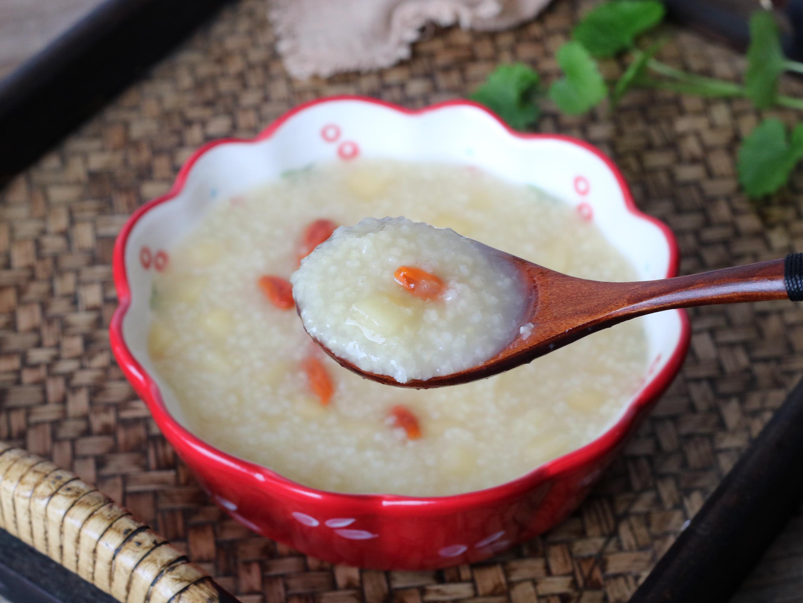 食材:黃小米、蘋果、枸杞、碎冰糖