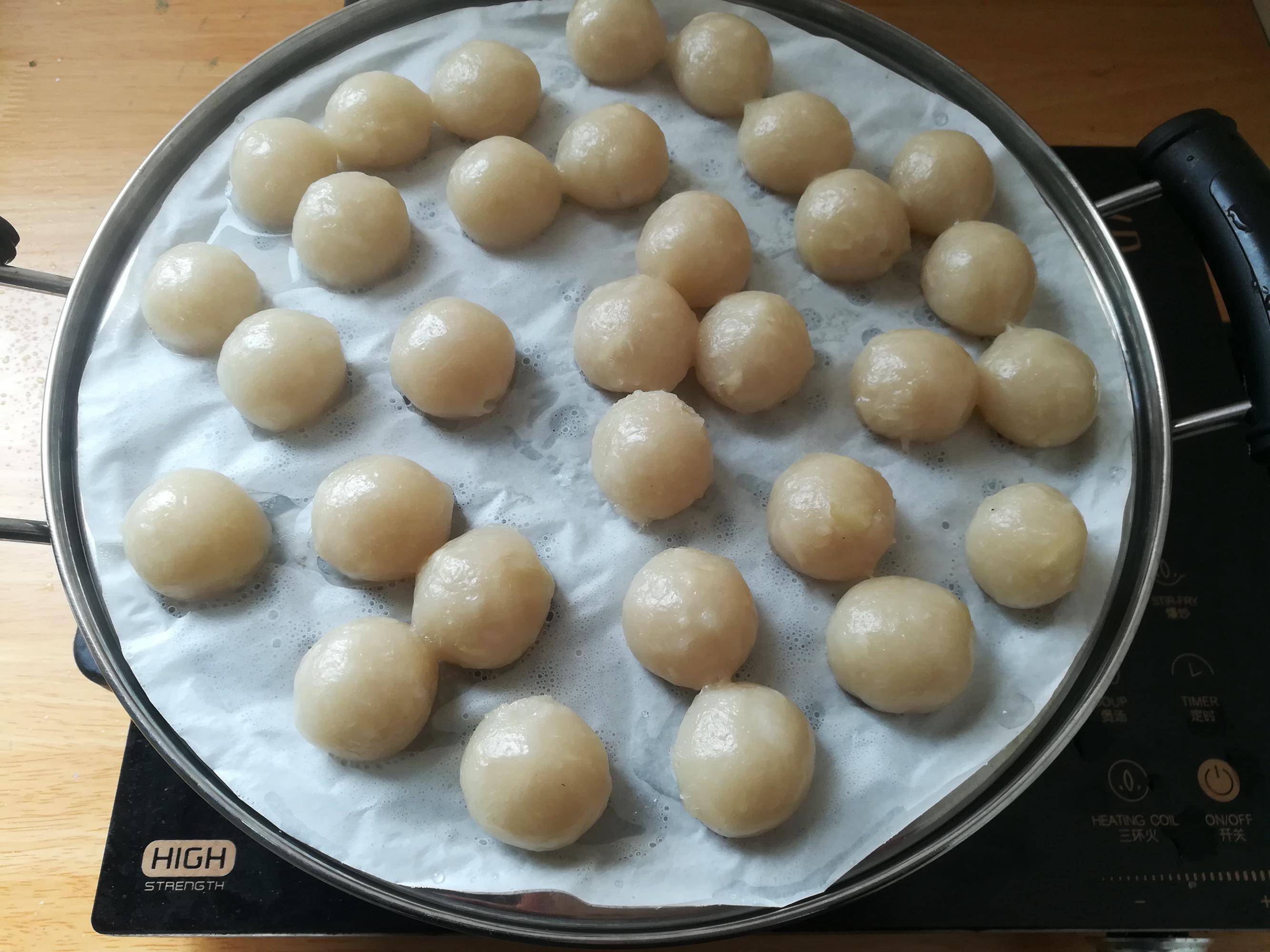 4、山藥丸子放到蒸鍋裏,大火隔水蒸6-8分鐘,熟透後取出來放涼。可以當零食喫,也可以煮湯。