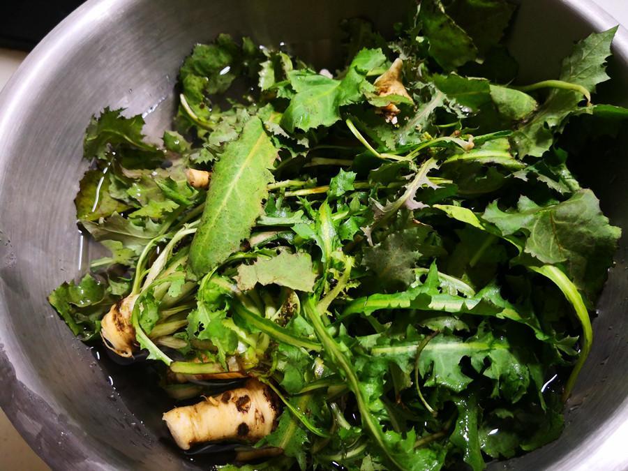1.野菜好喫,但是摘洗卻是非常麻煩的,把野菜的枯葉和爛葉都摘掉,再把根部剪下來,因爲苦菜的根很粗且苦味重,不適合蒸着喫,但是也不要浪費了,可以留着蘸醬喫,清熱去火。
