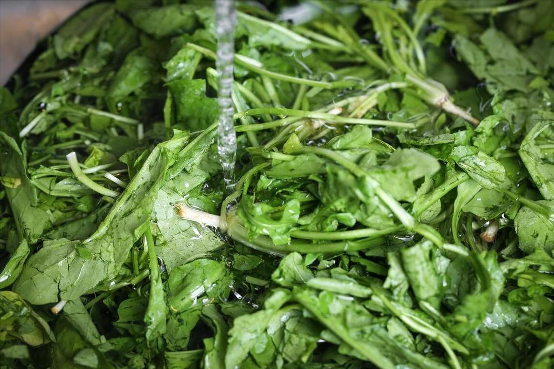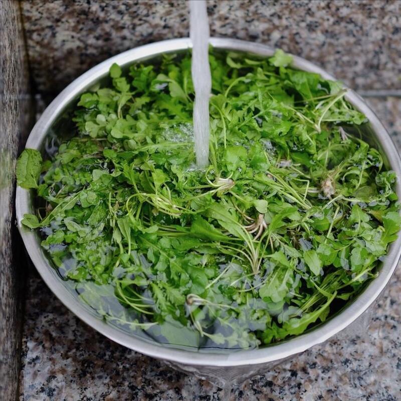 2、把薺菜拿回來以後,摘洗一下,裏面別混上野草,然後放在水中多衝洗幾遍,把泥土、灰塵都洗掉,接下來還需要準備一盆鹽水,將薺菜放進去,浸泡10幾分鐘,因爲野菜生長的環境比較差,所以要好好處理一下。