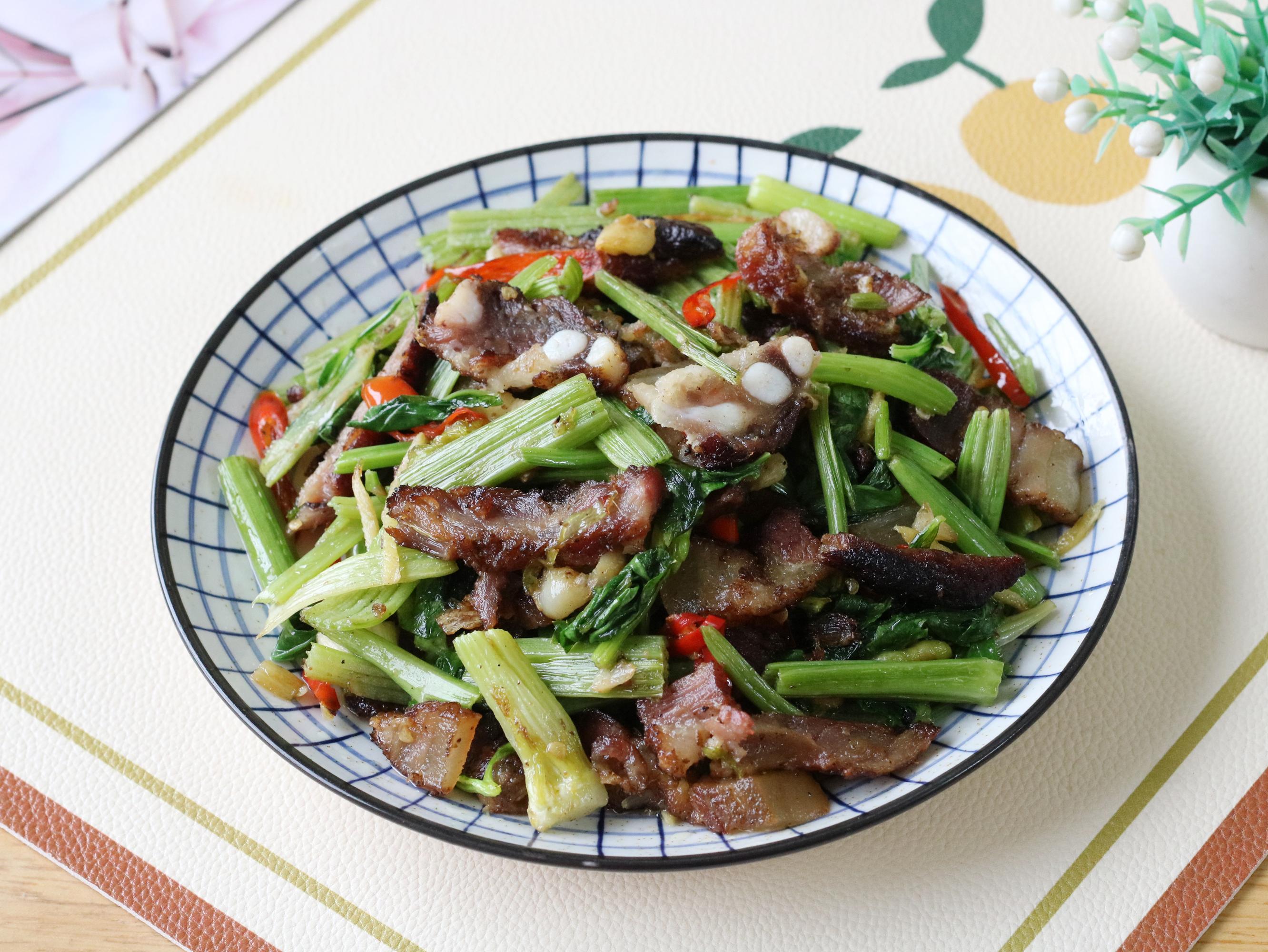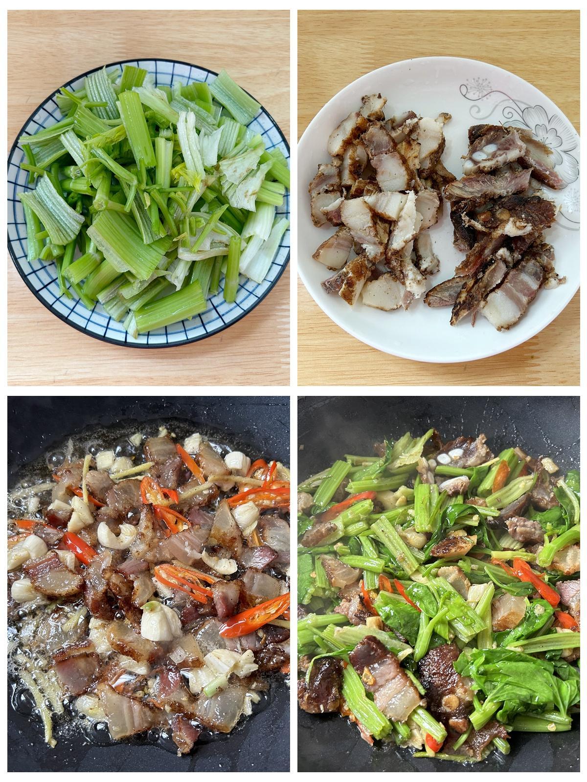 食材:芹菜、臘肉、生薑、大蒜、辣椒、食用油、鹽