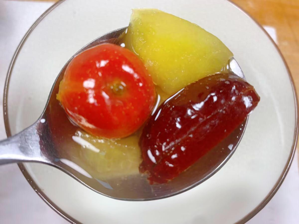 持續燉煮,直到水變得濃稠,果實煮爛,且呈現出湯汁黏稠狀。熬煮至滿意的濃稠度後,即可取出,待稍微冷卻後即可食用。這道湯品不僅口感清甜,而且含有豐富的果實營養,有助於調節腸胃,增強免疫力,是春季養生的一道佳品。
