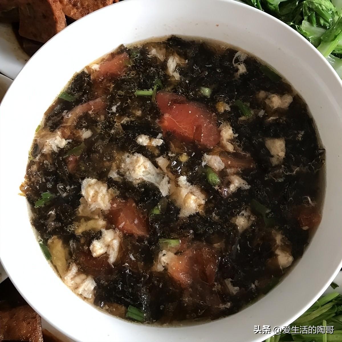 推薦喫法,紫菜火腿雞蛋湯。紫菜用來做湯喝,是一道鮮湯,湯裏面加入雞蛋火腿,搭配青菜葉,味道更加鮮美。