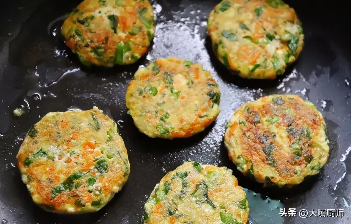 在豆腐碎中加入打散的雞蛋、切碎的蔬菜、鹽、胡椒粉攪拌均勻。