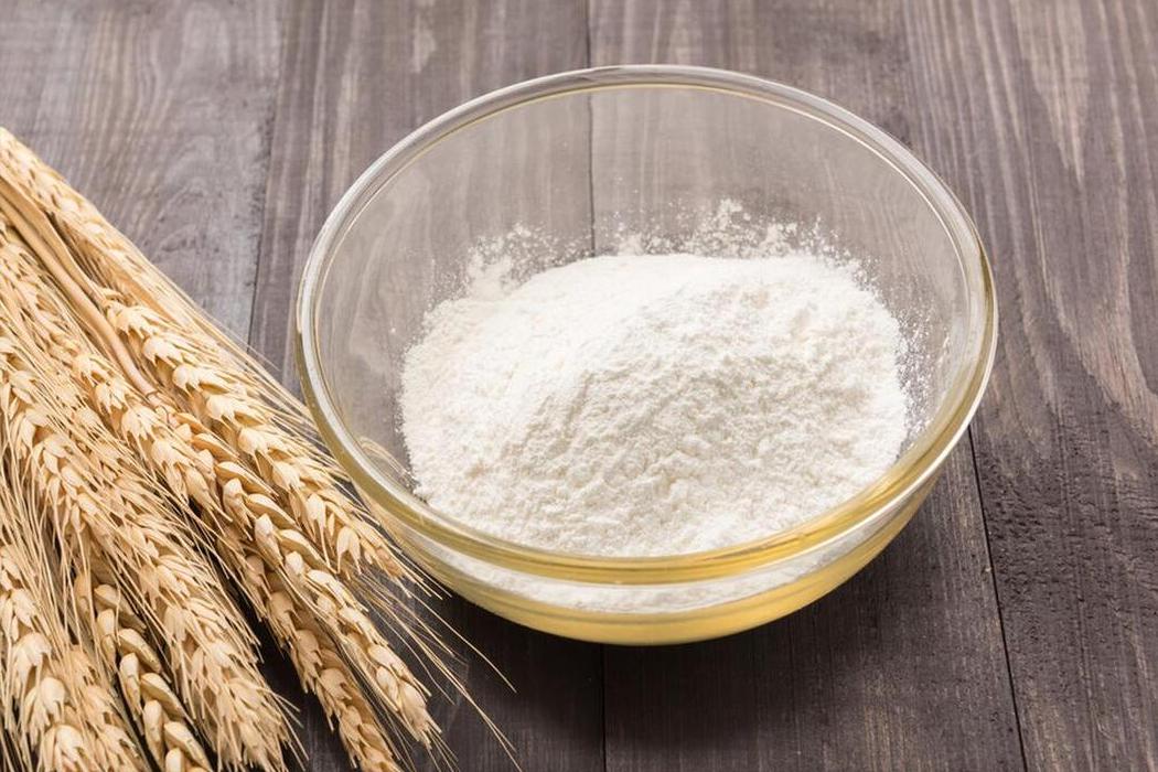 2、泡好後再用清水沖洗一遍,然後將水分瀝乾,但是也不要太乾了,不然裹不上粉。接下來,我們要把麪粉準備好,但是不要直接倒在青菜中,而是要下鍋炒一下,鍋子燒熱後倒入麪粉,翻炒到顏色發黃盛出來。