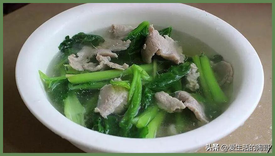 5依次放進肉片,讓其煮漂起來,加入薺菜段,煮沸即可