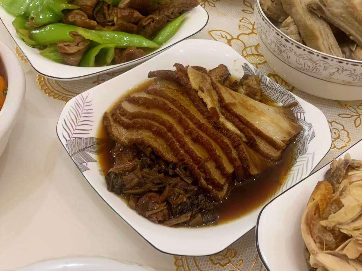 這是我喜歡喫的,早上和婆婆說想喫扣肉了,沒來得及做,就到鄉鎮的肉食店裏買了一份梅菜扣肉,婆婆說價格挺便宜,才35元。買回來後放入鍋內加熱一下,蒸熟後直接扣入盤子內,肥而不膩,太香了。