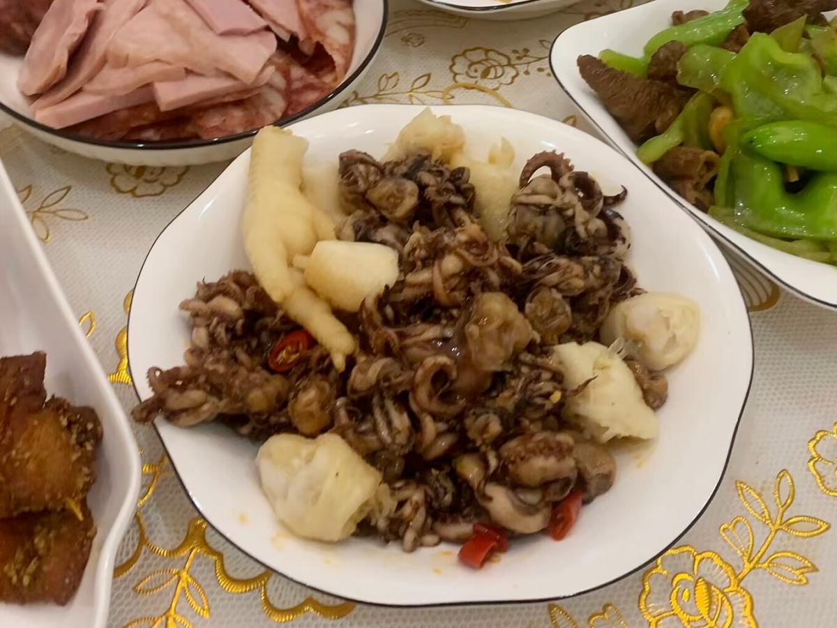 這個季節的海鮮很貴,普通家庭根本喫不起,但小八爪魚還能喫的起,在醬貨店買了一些八爪魚,不巧的是還不夠一盤,只能用我愛喫的雞爪拼湊了,她們喫八爪魚,我喫雞爪,豈不是兩全其美,大家都喫開心了。