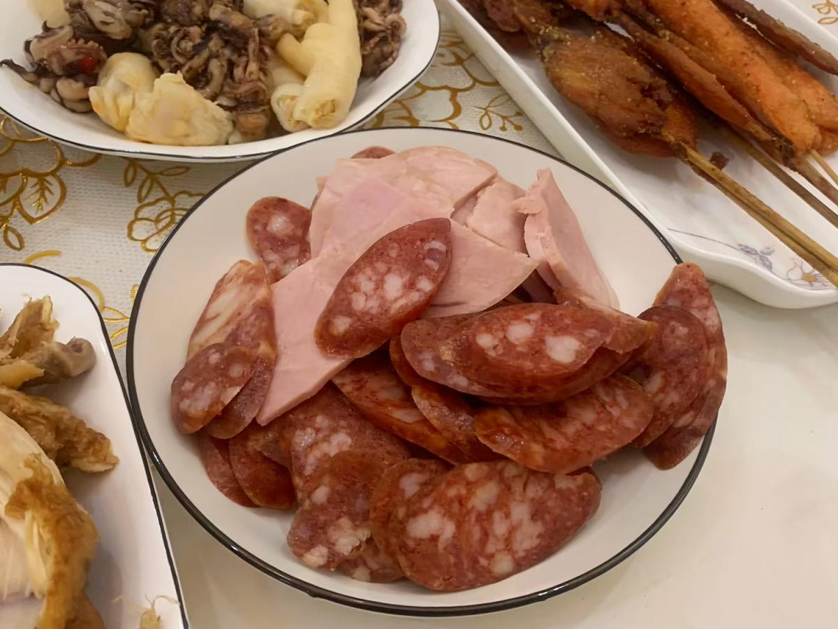 山東人每年冬天都會自己灌香腸,能喫到來年春天,正好冰箱裏還有臘腸沒喫完,就拿出來切了切,沒想到還不夠一盤,就拿家裏僅剩的半塊香腸拼湊了一大盤。這種一切就上桌的菜也算是預製菜了,您愛喫香腸嗎?
