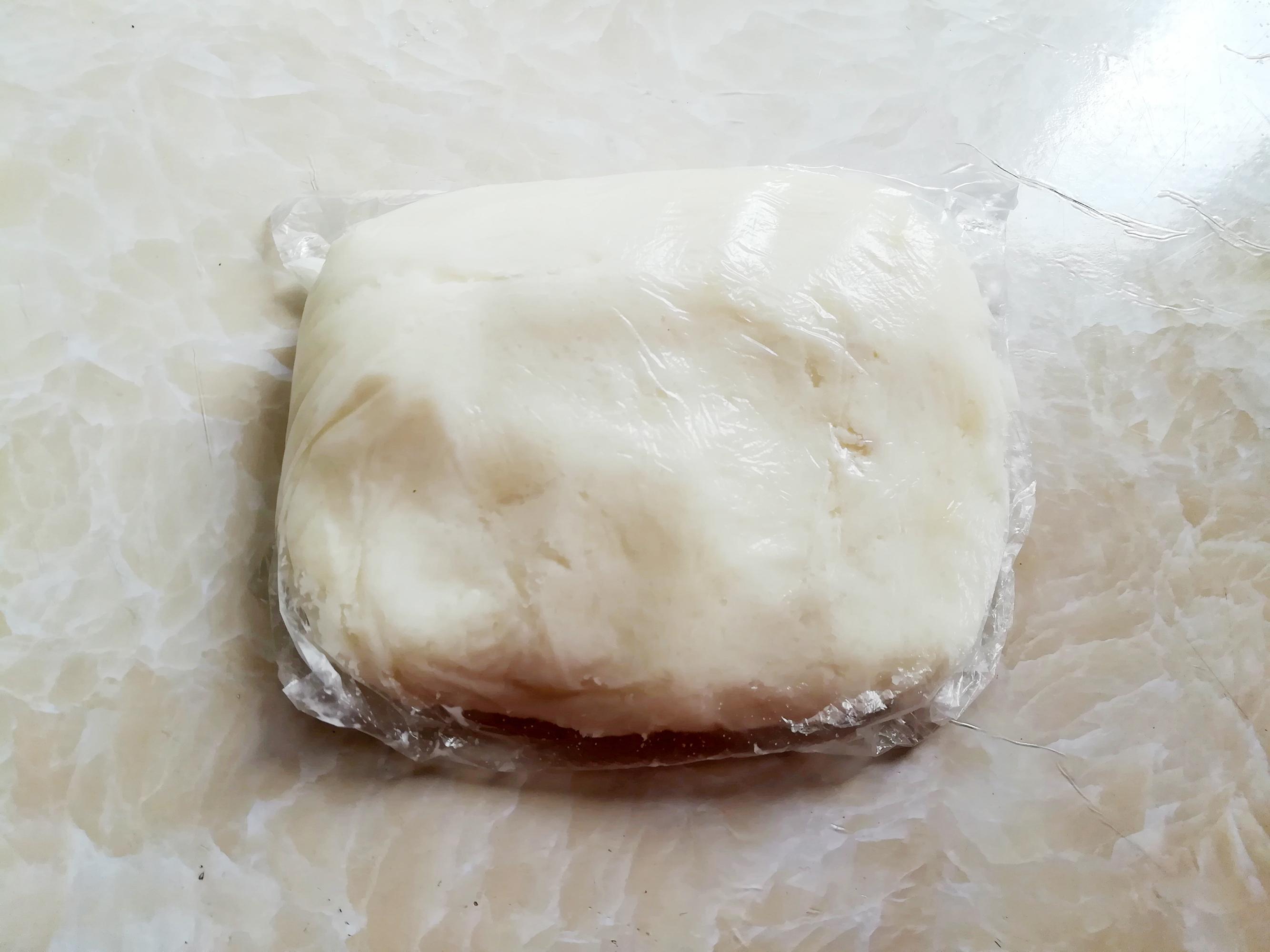 把山藥放入厚的保鮮袋中,用擀麪杖壓碎,再擀成細膩的山藥泥。