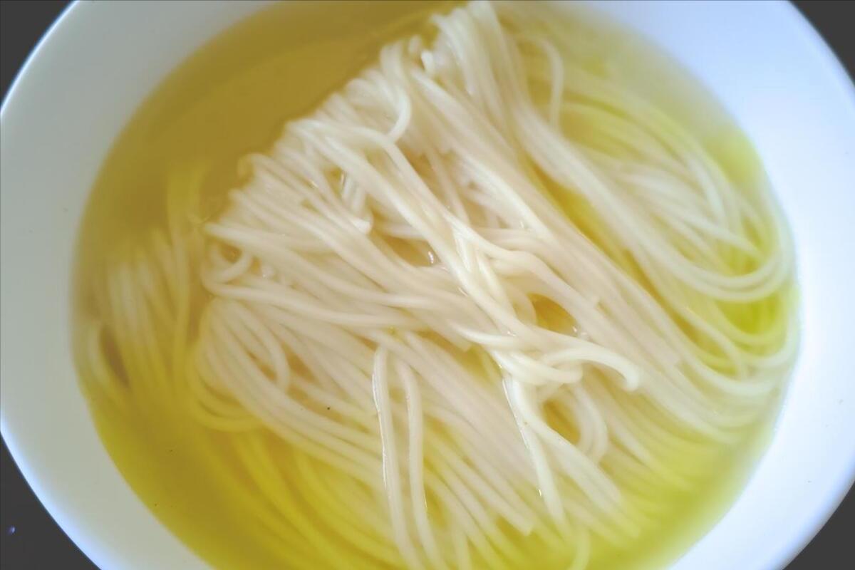 5、這個時候麪條基本上就沒有硬芯了,普通的麪條,不是太難熟的話,這個時候就算是可以了。直接關火盛出來即可,如果想喫涼麪的話,就可以放在涼開水中過一遍,撈出來開喫。還可以弄點滷子、配菜、小鹹菜,澆在上面更美味,口感更豐富。