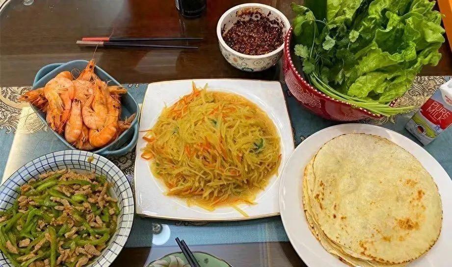 週四兒子說:媽媽我想喫春餅了,於是我就自己製作了春餅,雖然比外面買的難看了一些,但自己製作的更乾淨衛生,炒了一個豆芽菜,一個土豆絲,燉了一個紅燒肉,切了一盤黃瓜絲,還有我自己製作的炸醬,捲一捲就可以喫,兒子喫了只誇我做的好,被兒子誇,我也特別開心。