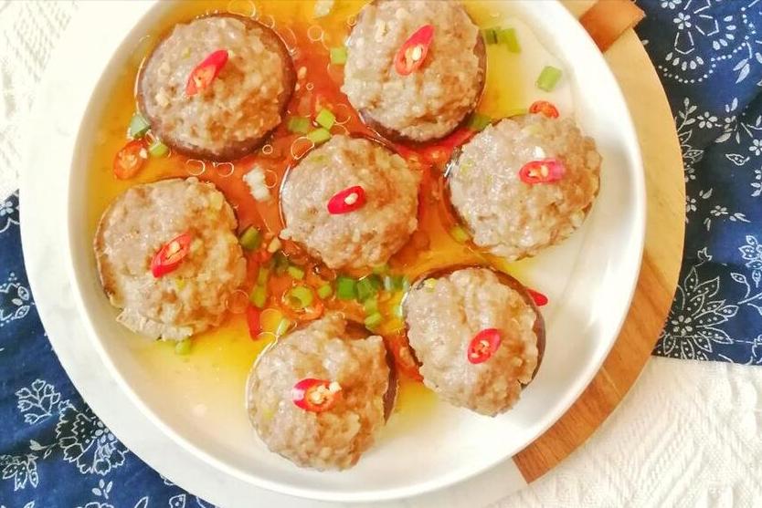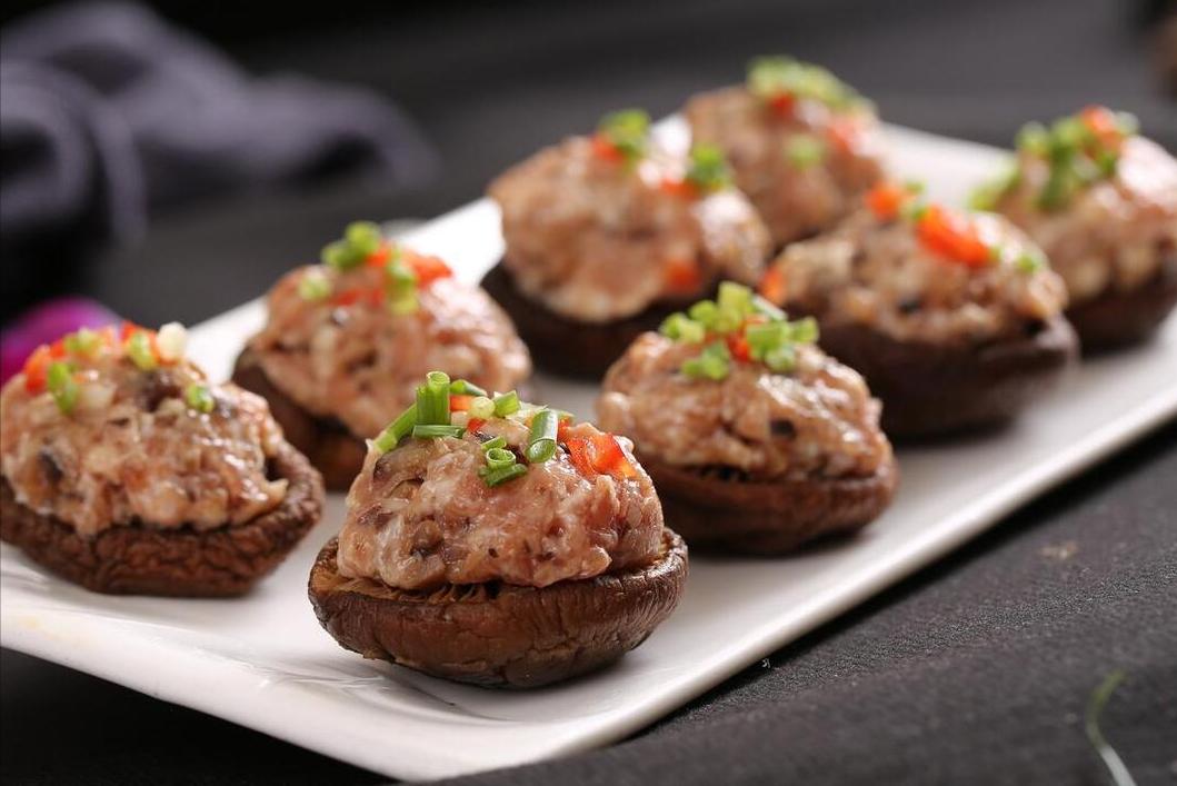 3、準備一個盤子,把香菇均勻的擺放在上面,把肉餡團成一個個的小球,然後擺放在香菇上面,放到一旁備用。鍋中倒上適量的清水,然後開大火燒開,燒開以後把盤子放上去,隔水蒸10分鐘就熟了。