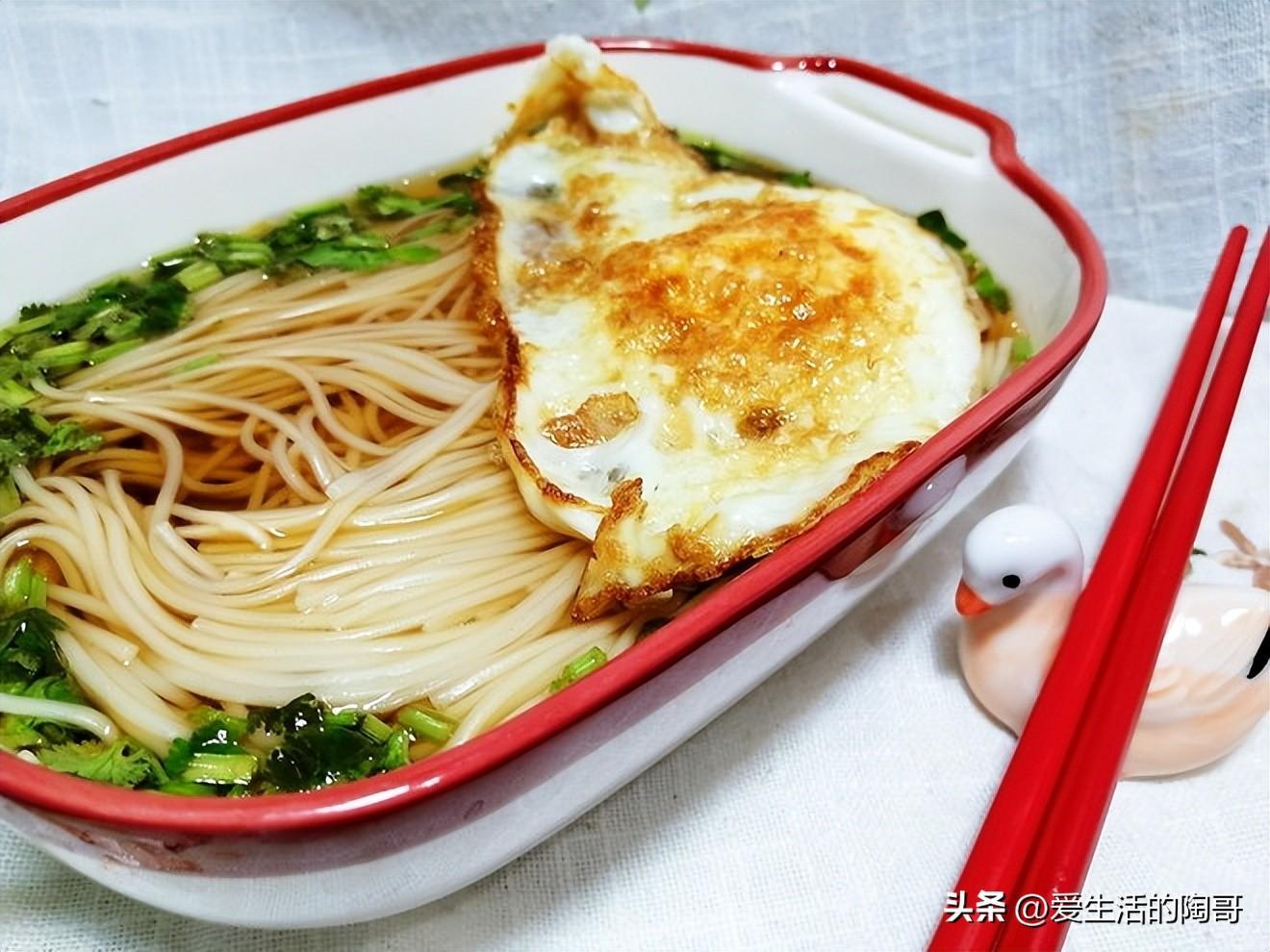 4煮好的麪條放入碗內,拌均勻即可食用,上面放煎好的雞蛋,完美。