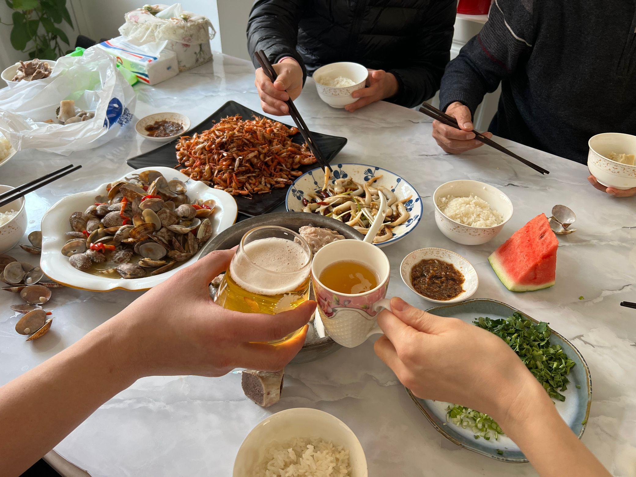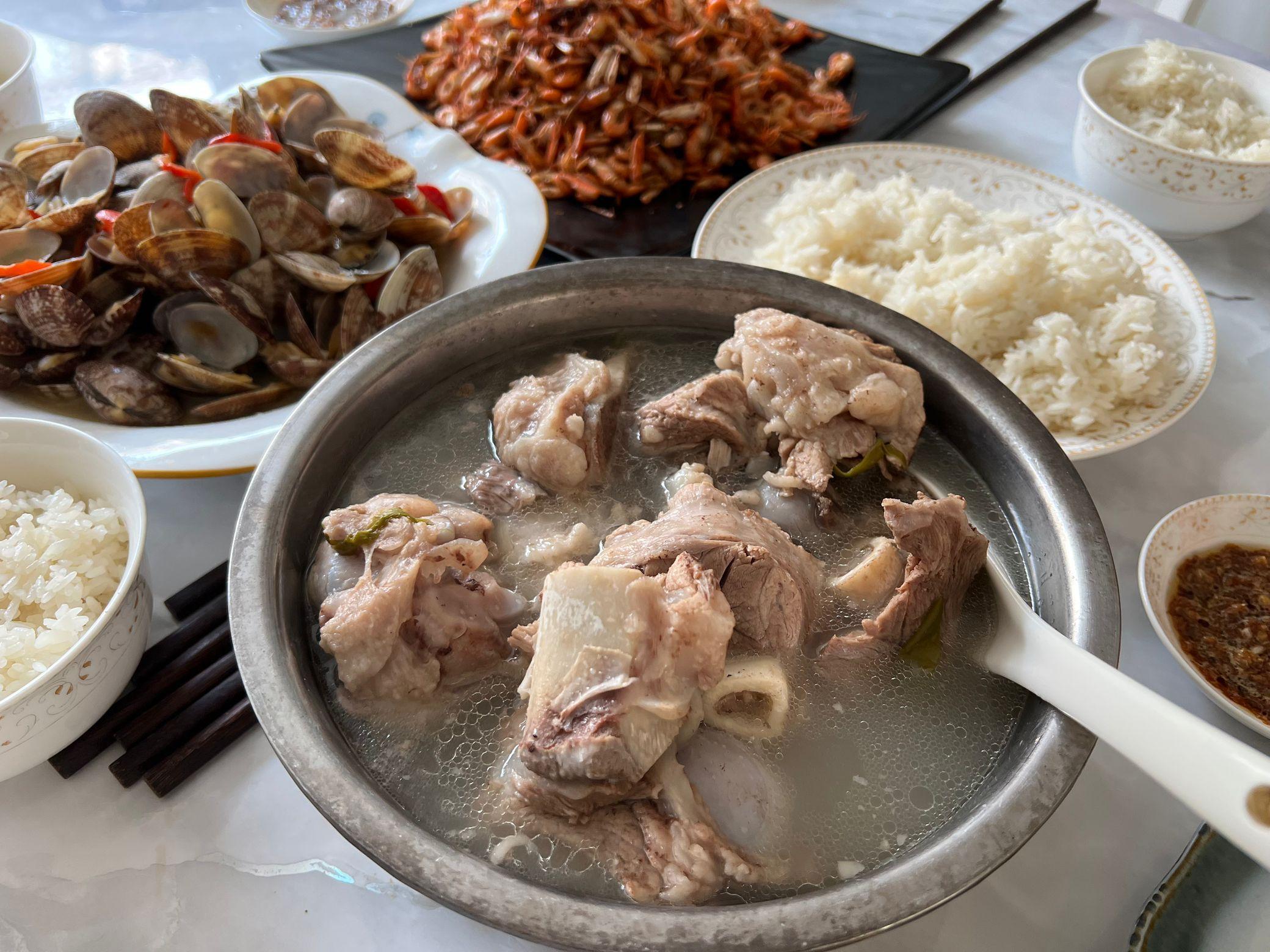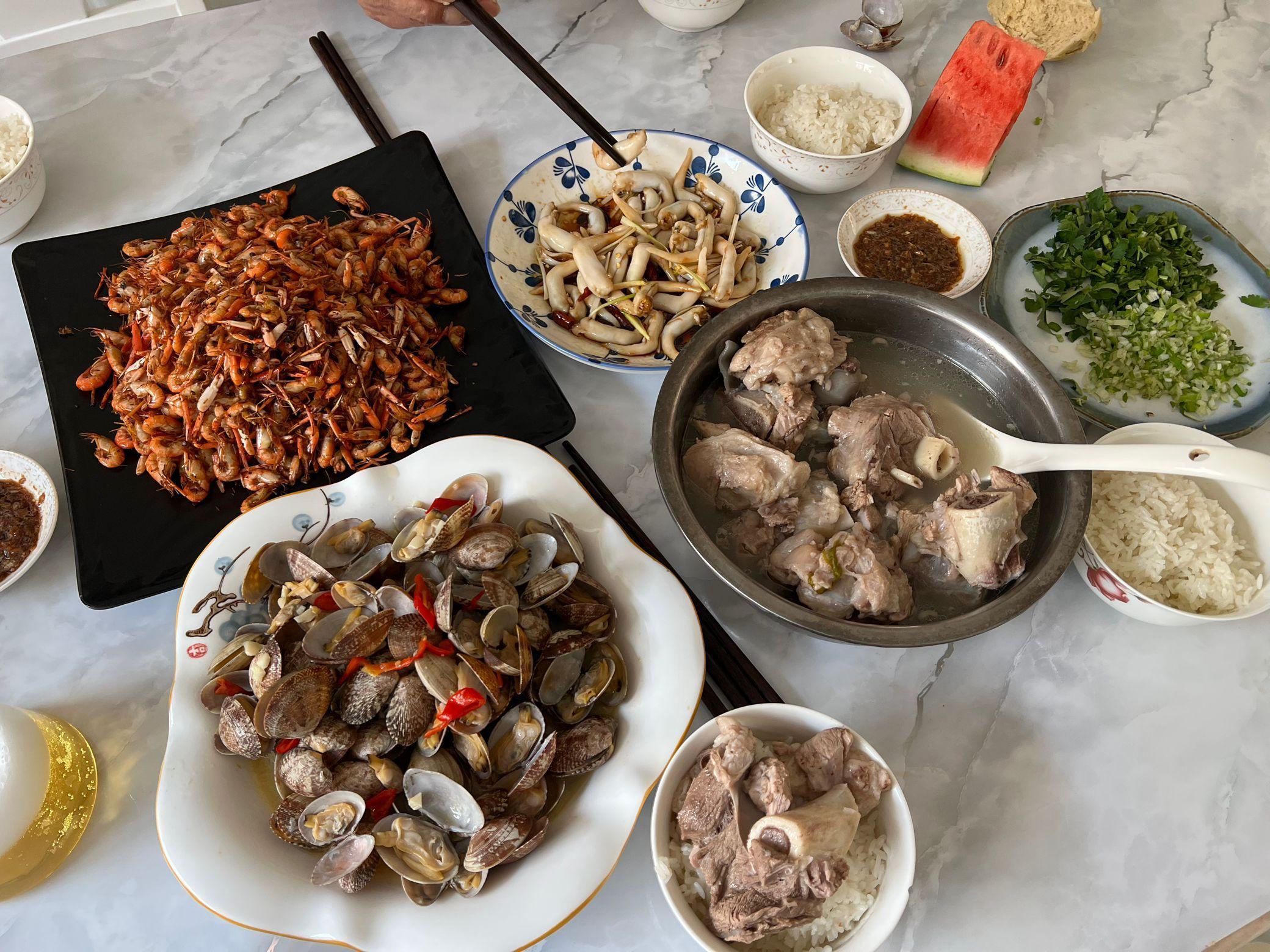 晚餐一共做了四個菜,其中燉大骨頭棒是婆婆在超市買的,花了50多元,婆婆每次聽到大姑姐要來就高興的合不攏嘴,每次都給她閨女準備最愛喫的大骨棒,另外三個海鮮是老公去樓下的海鮮店裏買的,分別是花甲、鳥貝和嘎嘣蝦,這小蝦買的時候鮮活鮮活的,看起來就鮮。