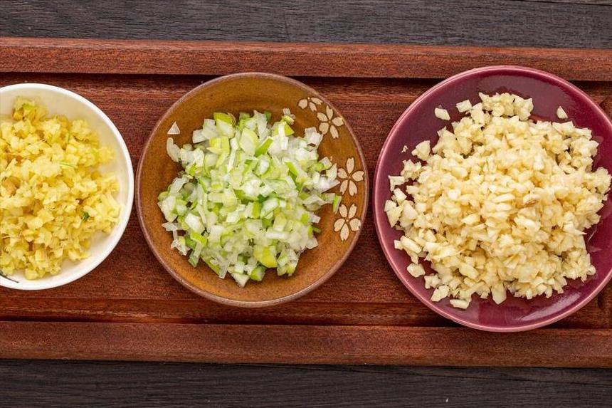 1、先把蔥花、蒜末、小米椒全部切好,然後全部倒在一個小碗裏,這些就根據個人口味來調整就行。