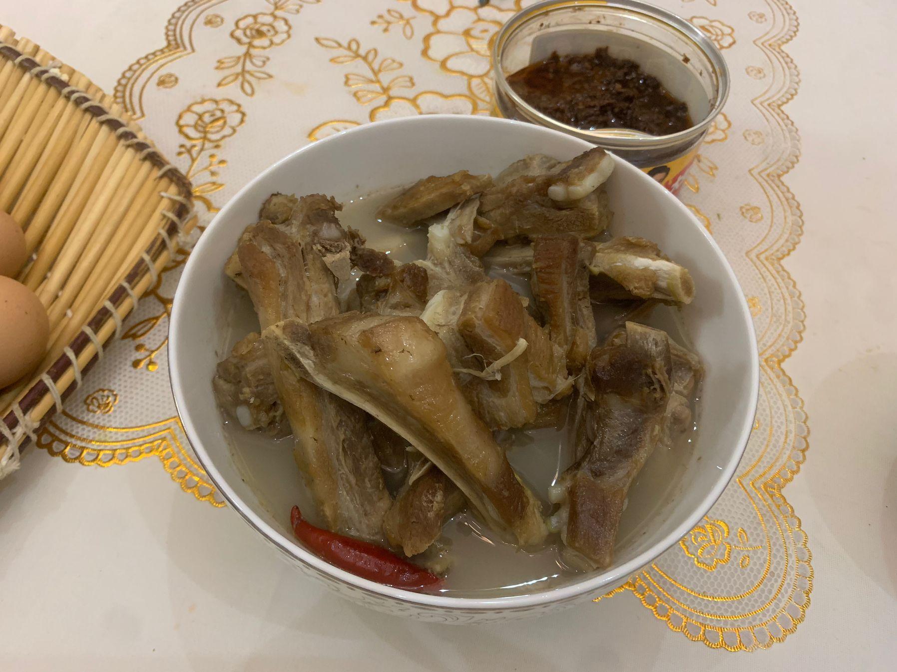 別看我家這個剩排骨賣相不好,但是喫起來特好喫。是婆婆臨去醫院的前一天給我燉的一大盆,說我一個人在家伺候三個孩子太累,特意買了100塊錢的排骨燉熟後放在大盆內,冷藏在冰箱裏,早上熱一下,孩子們還愛喫,也營養。
