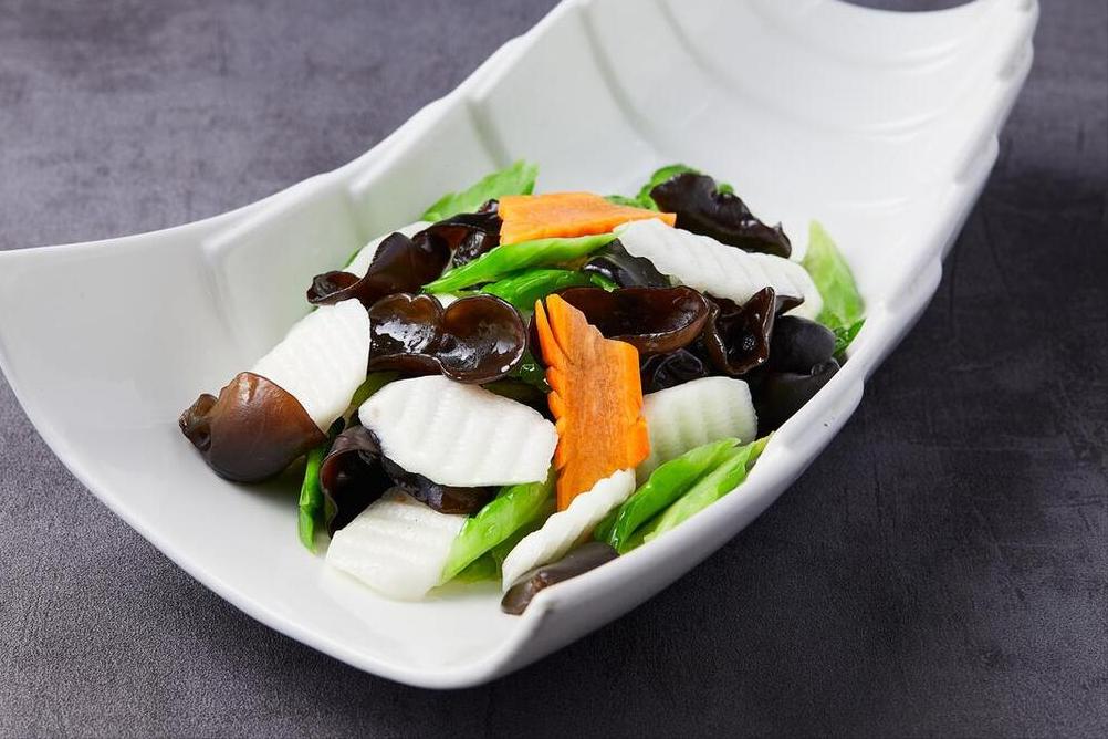 食材:山藥、青椒、木耳、胡蘿蔔、鹽、味精、大蒜、食用油