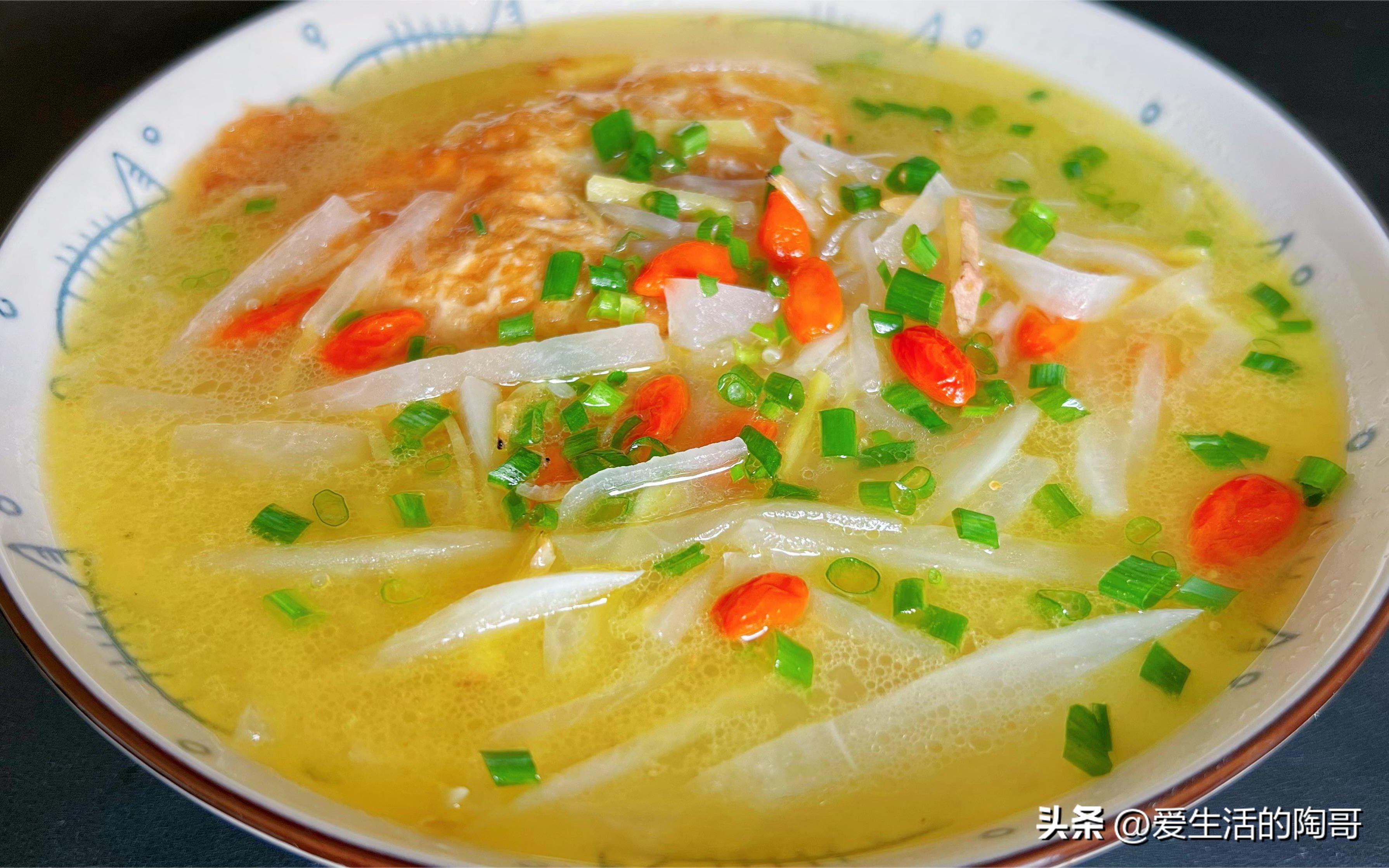 蘿蔔絲魚雞蛋一起煮湯喝,湯汁喝起來特別清甜,太鮮美了。適當喝一些,補足營養增強免疫,春季少生病。
