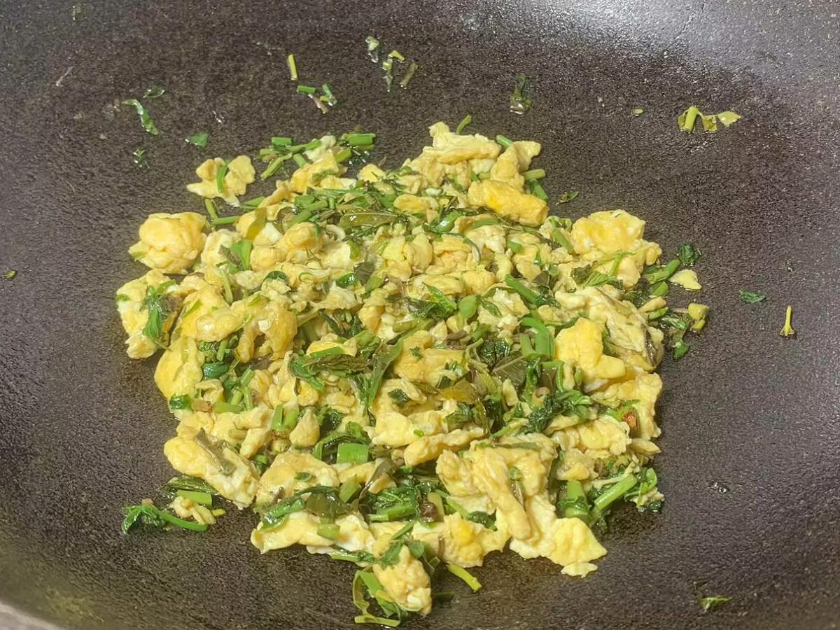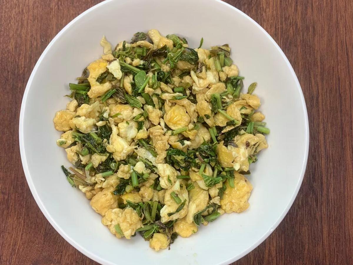 2、香椿在炒的過程中會出水,一定要提前炒好香椿,大火爆炒鎖住水分,最後炒出來的香椿雞蛋焦香鮮美。