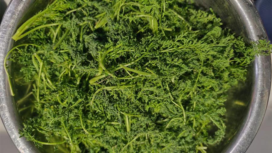 1.麥蒿先要摘洗乾淨,相比薺菜,麥蒿屬於很好摘洗的野菜了,只是它的味道比較重,有的人不太適應,所以去味是關鍵。