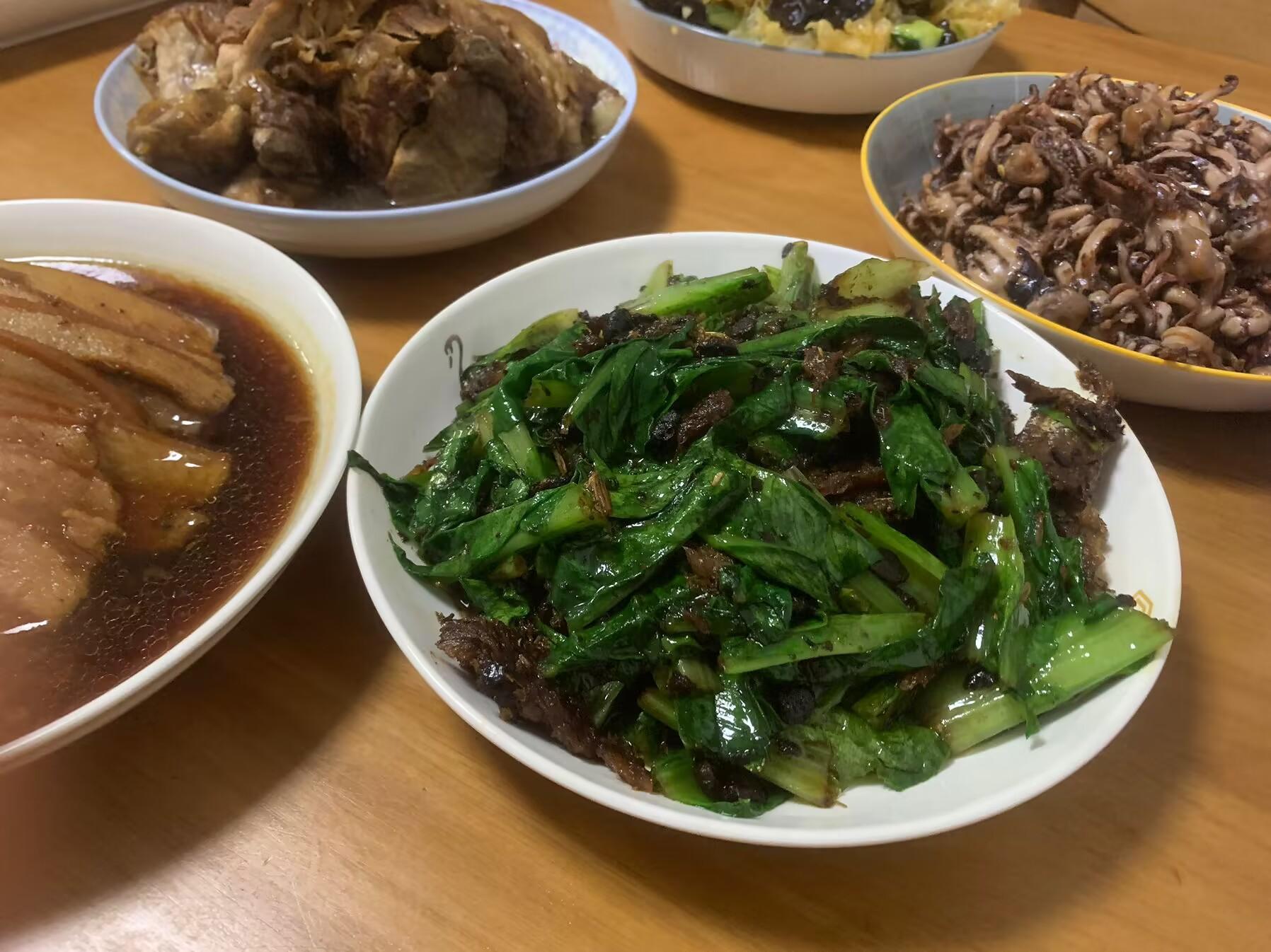 平時爸媽血壓高,不能喫肉,弟媳每頓飯做的特別講究,葷素搭配的很好,一大早弟媳就去菜市場買了新鮮的油麥菜,油麥菜清香可口,是老母親最愛喫的蔬菜。弟妹用金槍魚搭配炒了炒,鮮香美味,爸媽都喜歡喫,直誇弟媳孝順,把二老寵的像個孩子。