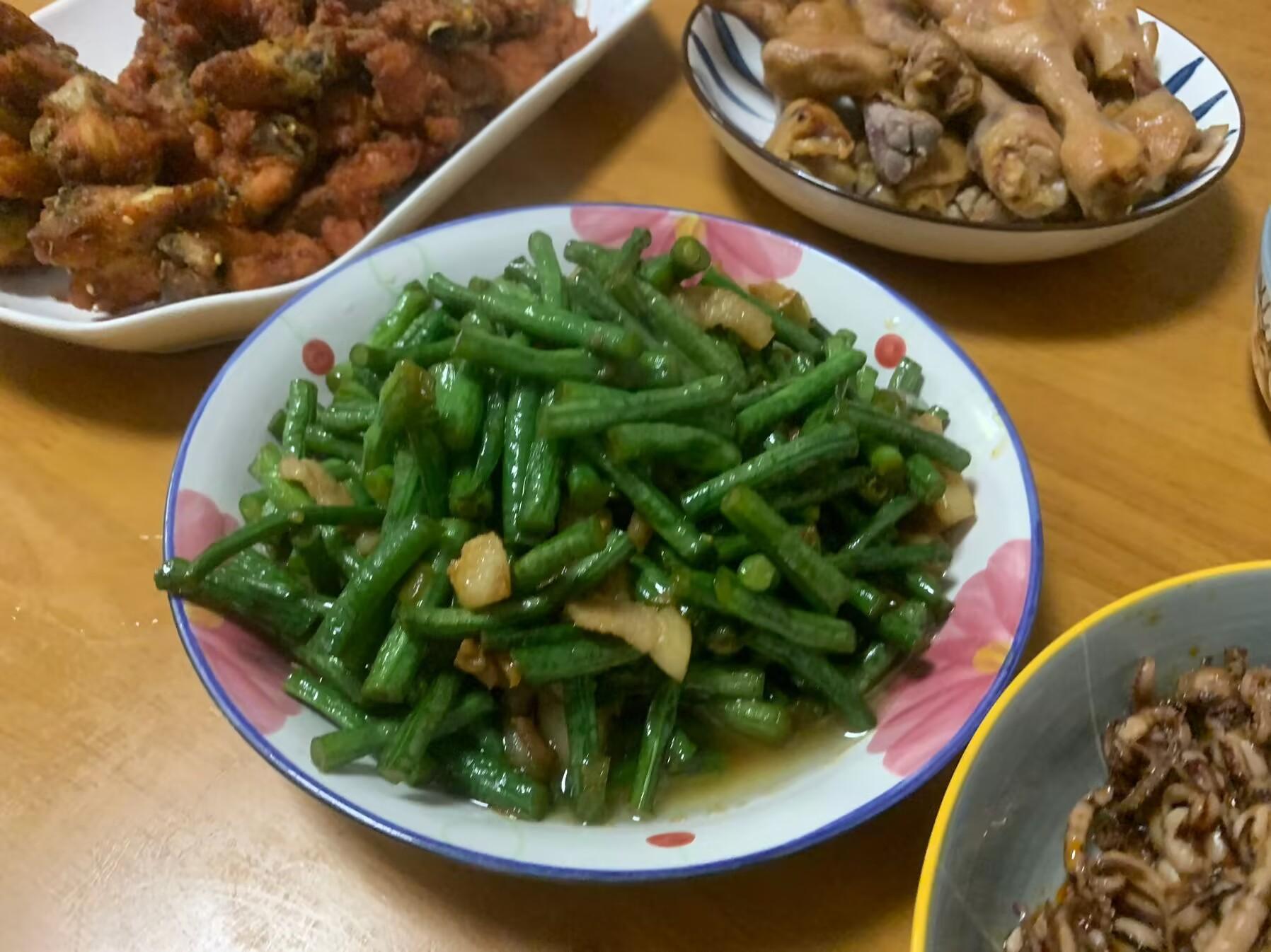 弟媳介紹說:很多人炒這個長豆角炒的沒有味道,其實炒豆角也是有技巧的,要把豆角提前焯水,燙至半熟後瀝乾水分,最後再用炒鍋爆炒30秒,這樣豆角入味好喫,還能節省烹飪時間。