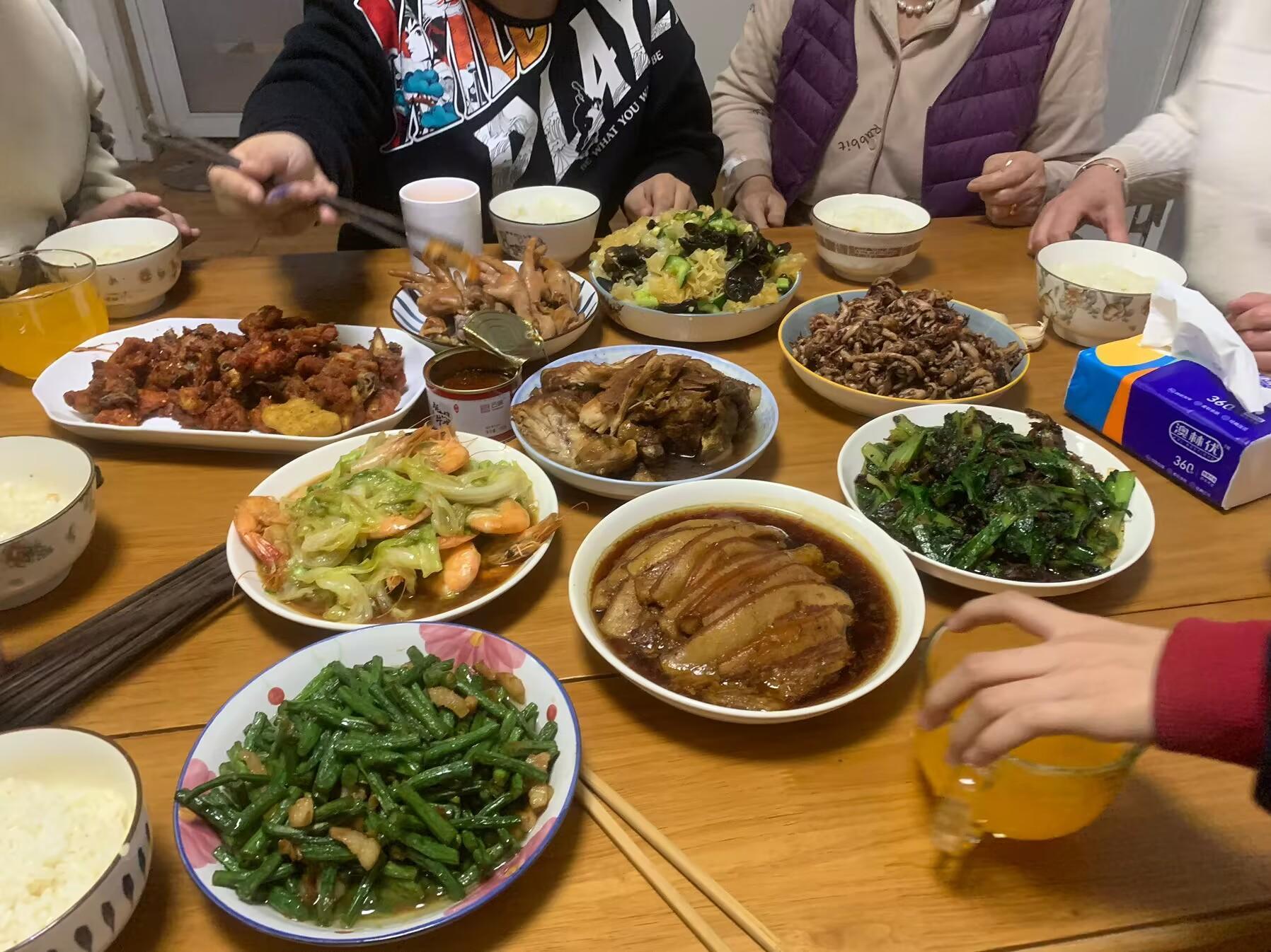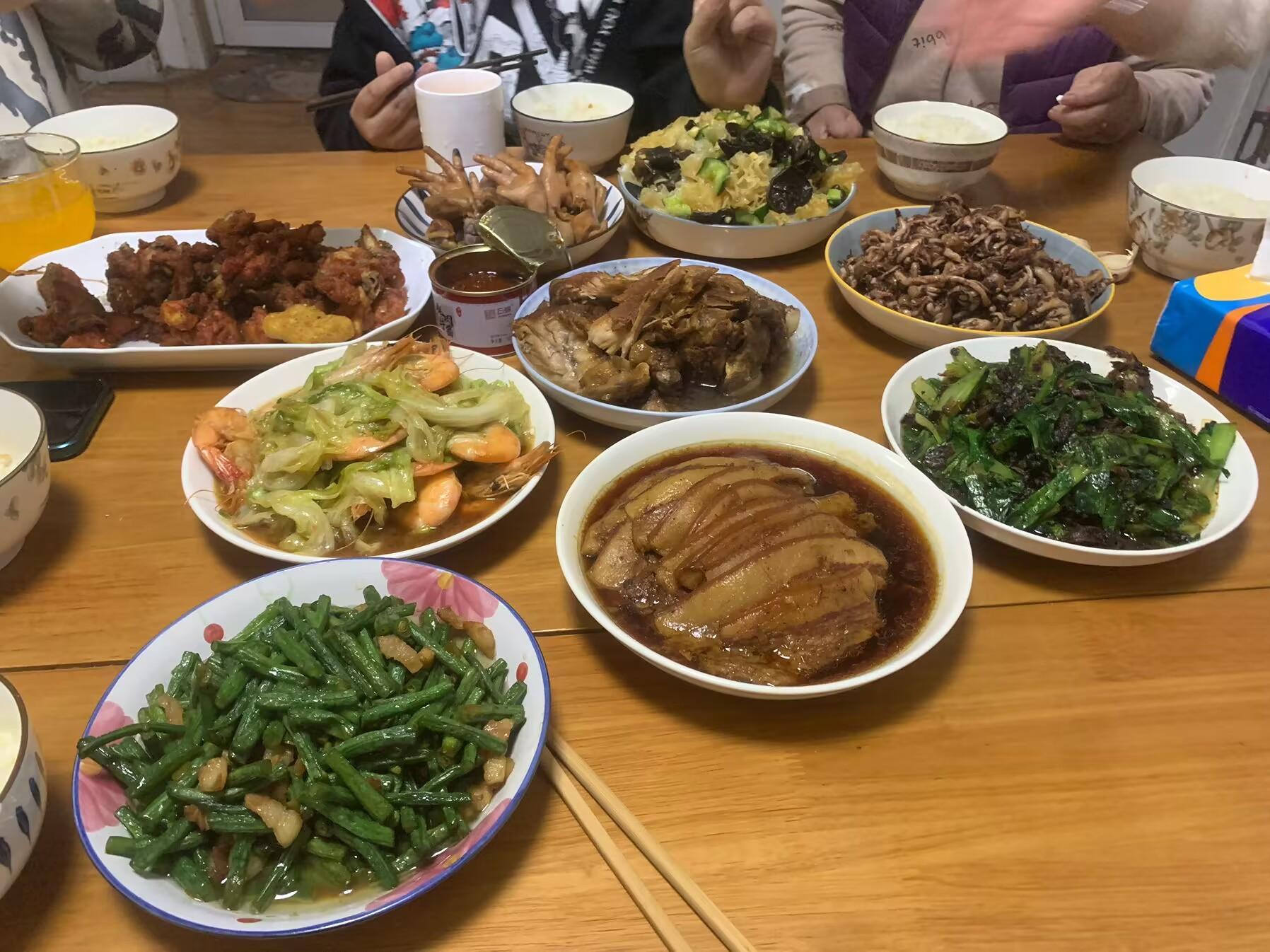 回孃家的心情就是不一樣,心裏美滋滋,孩子見我都說:回家見媽媽的心情就是美啊。在路上的超市裏給侄子、侄女買了一些他們喜歡喫的零食,給爸媽買了點麪包。一進門弟媳婦就把飯菜炒好端上桌,就等我們娘倆進門喫飯了。兩個姐姐離的比較近,早就到了。喫飯時大侄子給我們拍了幾張照片,都各自分享了一下團聚在孃家的快樂時光,不到一分鐘在朋友圈火了,都誇我弟媳賢惠、善良,做的飯菜接地氣,都問弟媳換不換老公,哈哈。下面和大家分享一下我賢惠弟媳準備的一桌子飯菜。
