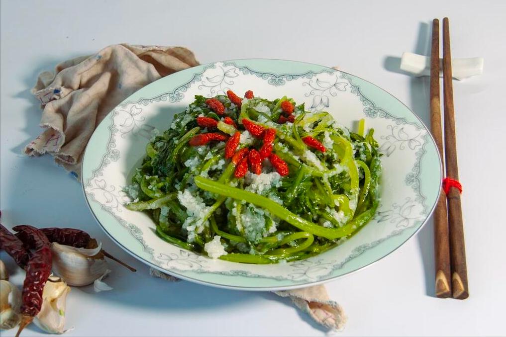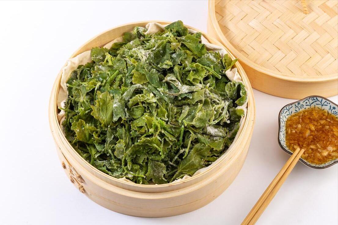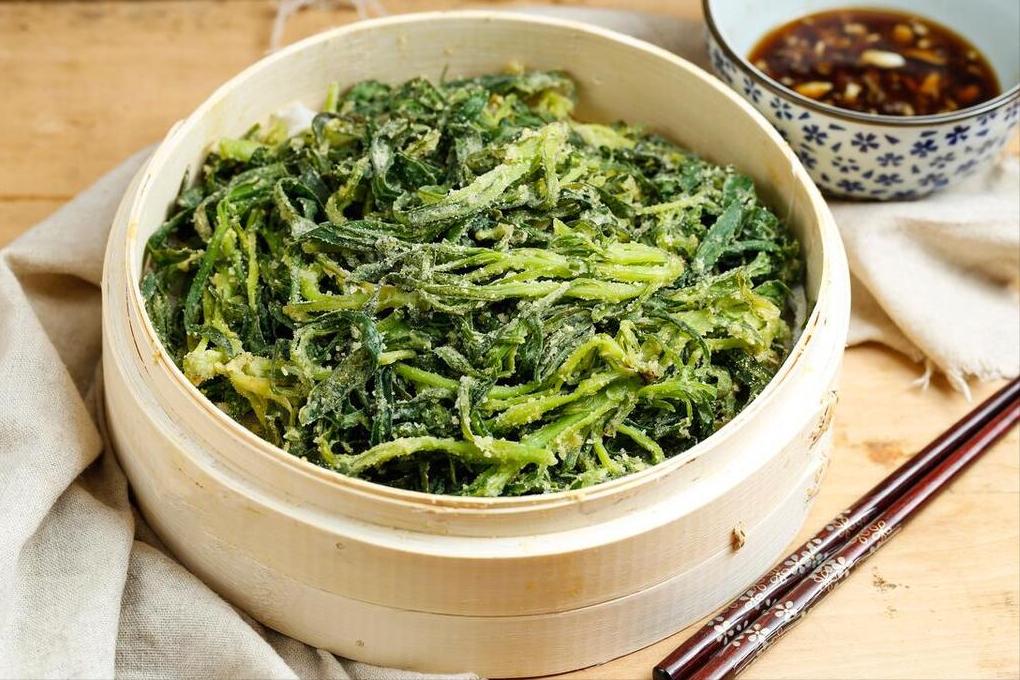 不管蒸什麼野菜,好多朋友蒸出來都犯了一個毛病,就是野菜黏糊糊的,一點也不夠清爽,粘連成坨。