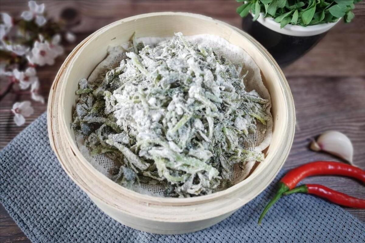 如果出現這種現象,那就說明蒸的方法沒用對,直接往野菜中拌麪粉,大錯特錯!