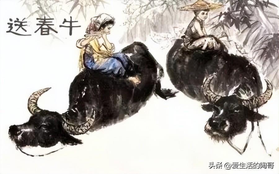 送春牛是春分農忙的一件重要的事情。一張帶有牛的圖畫,叫春牛圖,貼在牛角上或者送給親朋好友農戶,寓意着新的一年風調雨順。