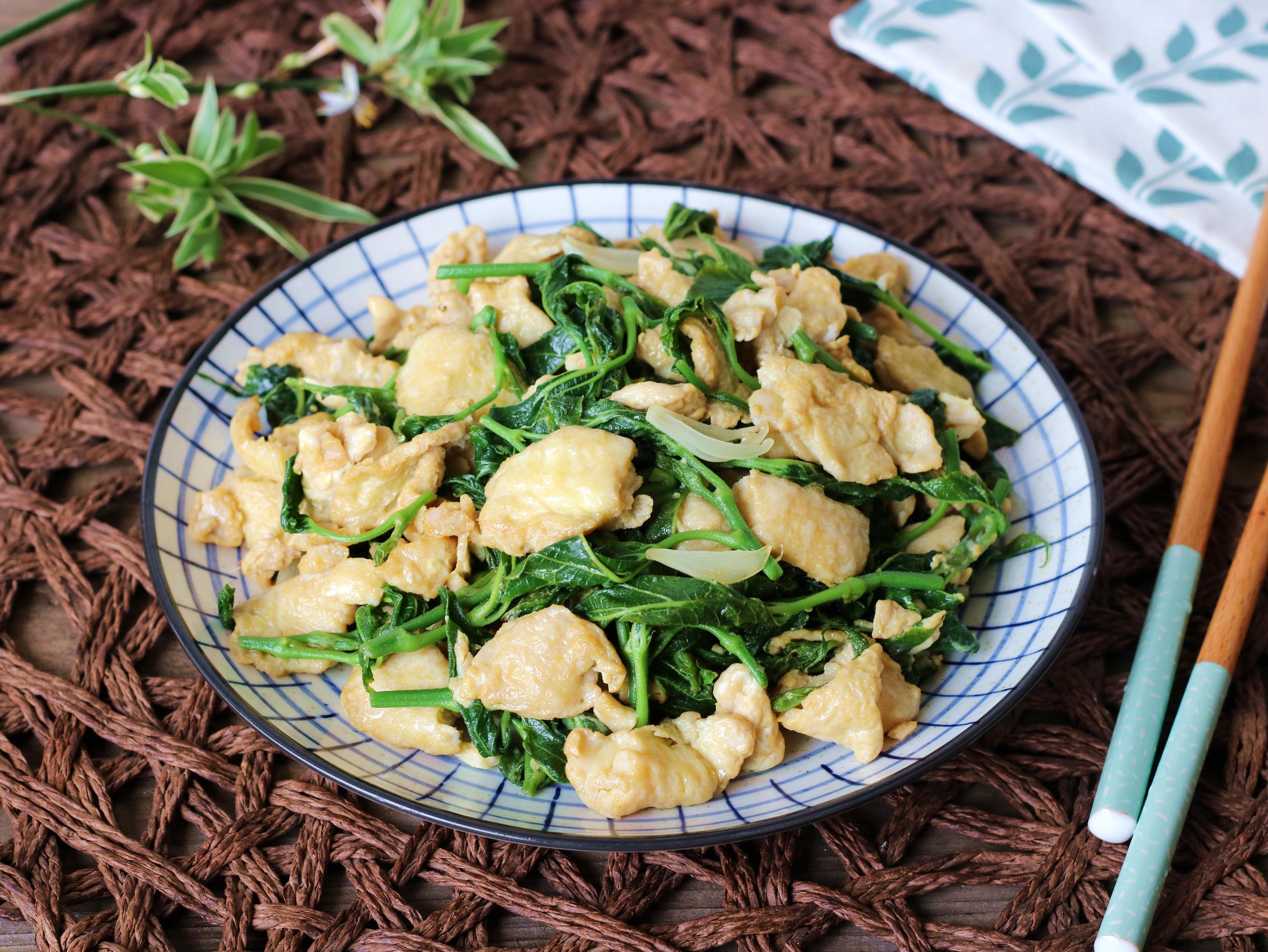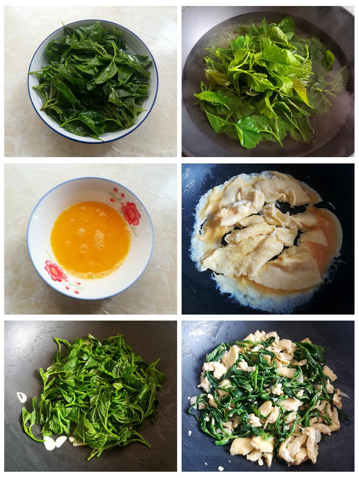 食材:桑葉嫩芽 適量,雞蛋 2-3個,大蒜,食用油,鹽