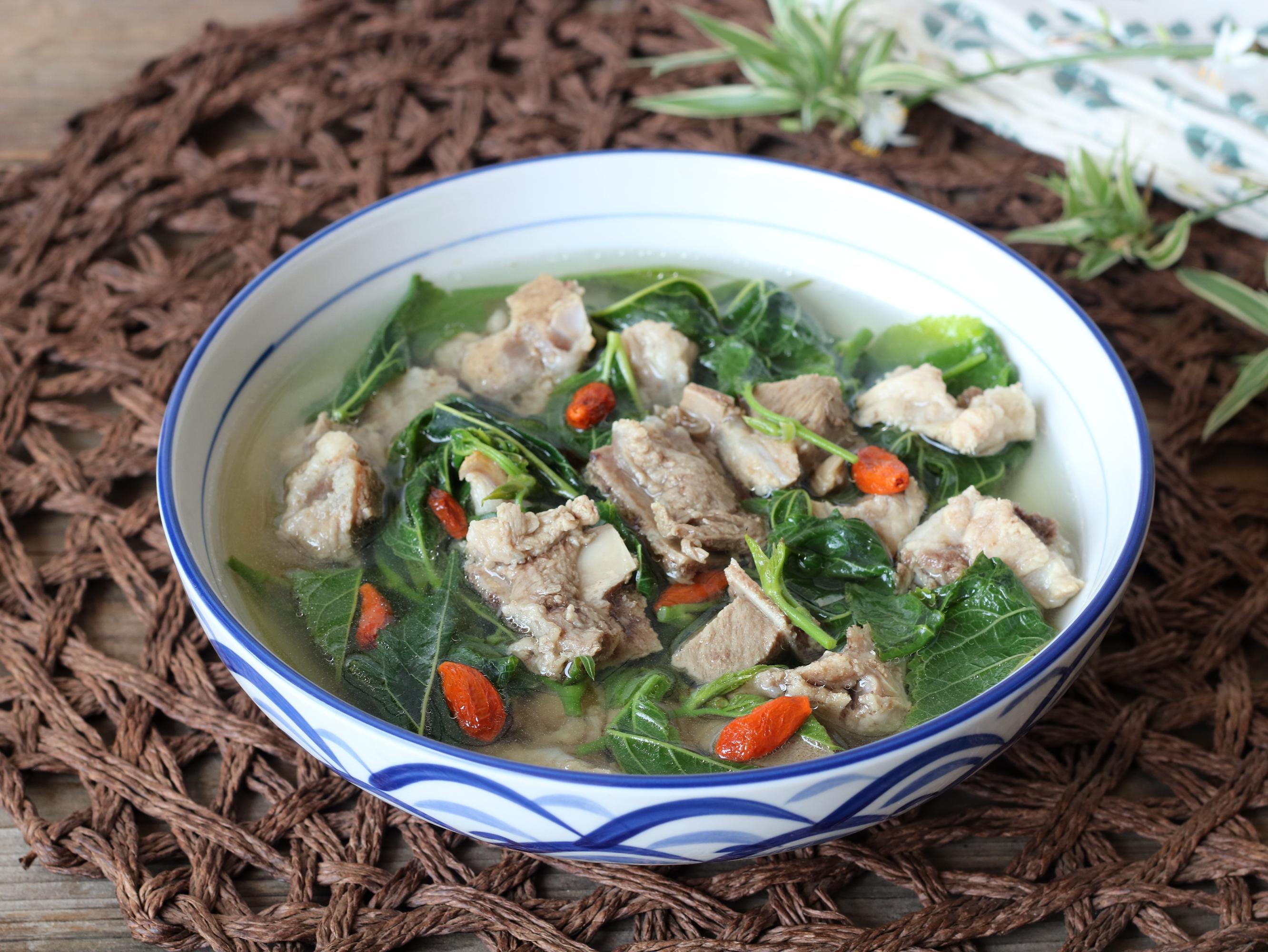 食材:排骨 1根,桑葉適量,枸杞,鹽,生薑