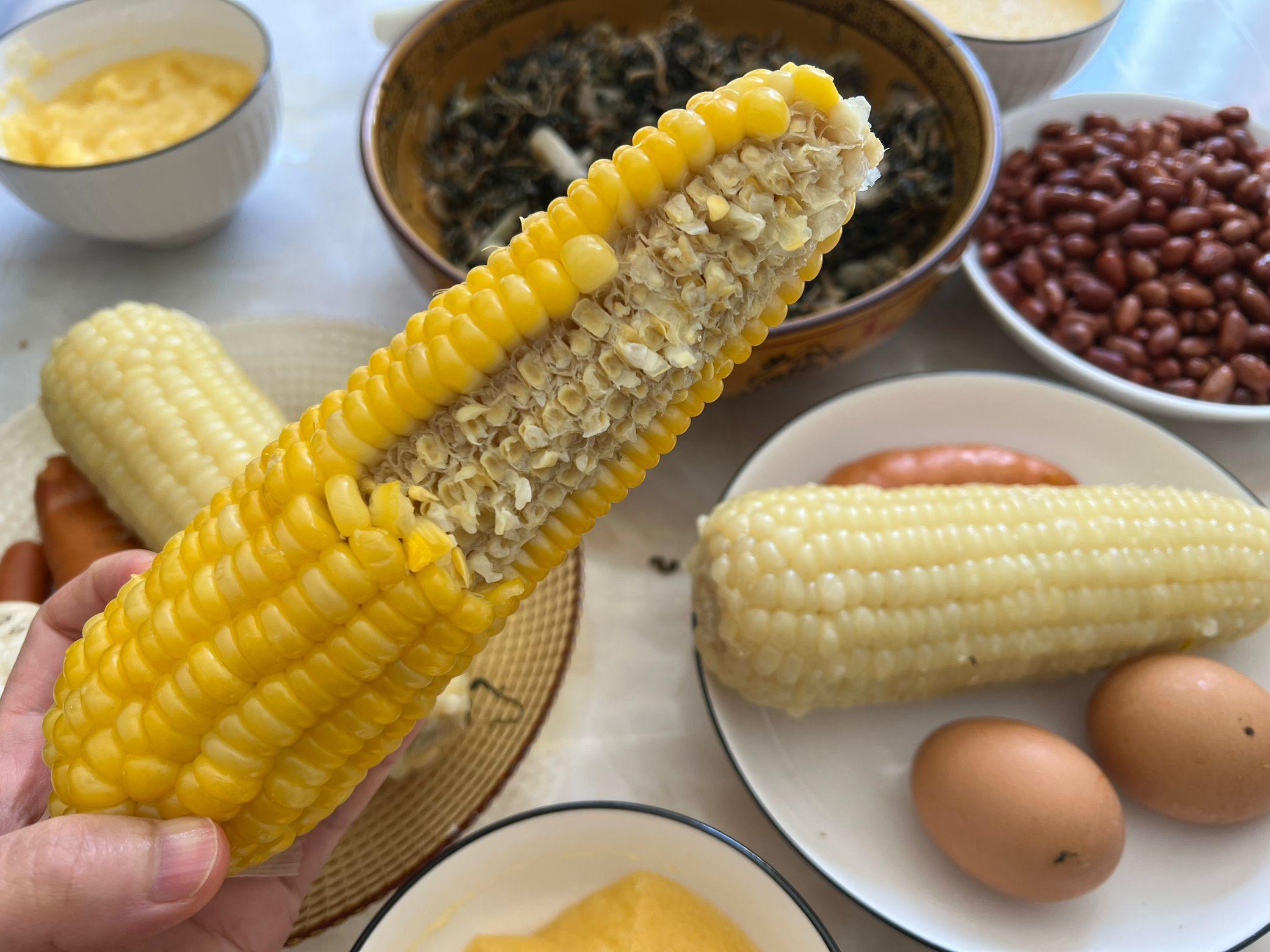 主食就是玉米和饅頭,兩個雞蛋孩子喫,我和老公最近都愛喫玉米,幾乎每天都會買幾個,白色玉米2.5元一個,黃色玉米3.5元一個,這個季節的玉米價格相對來說還是比較實惠的。稀飯是玉米麪的,自家玉米磨的,特別香,我家幾乎每天都喝,做法簡單,營養也豐富,當早餐還是挺不錯的。我覺得玉米麪稀飯也算是山東人的標配了,我從小喝到大,真是喝不夠。