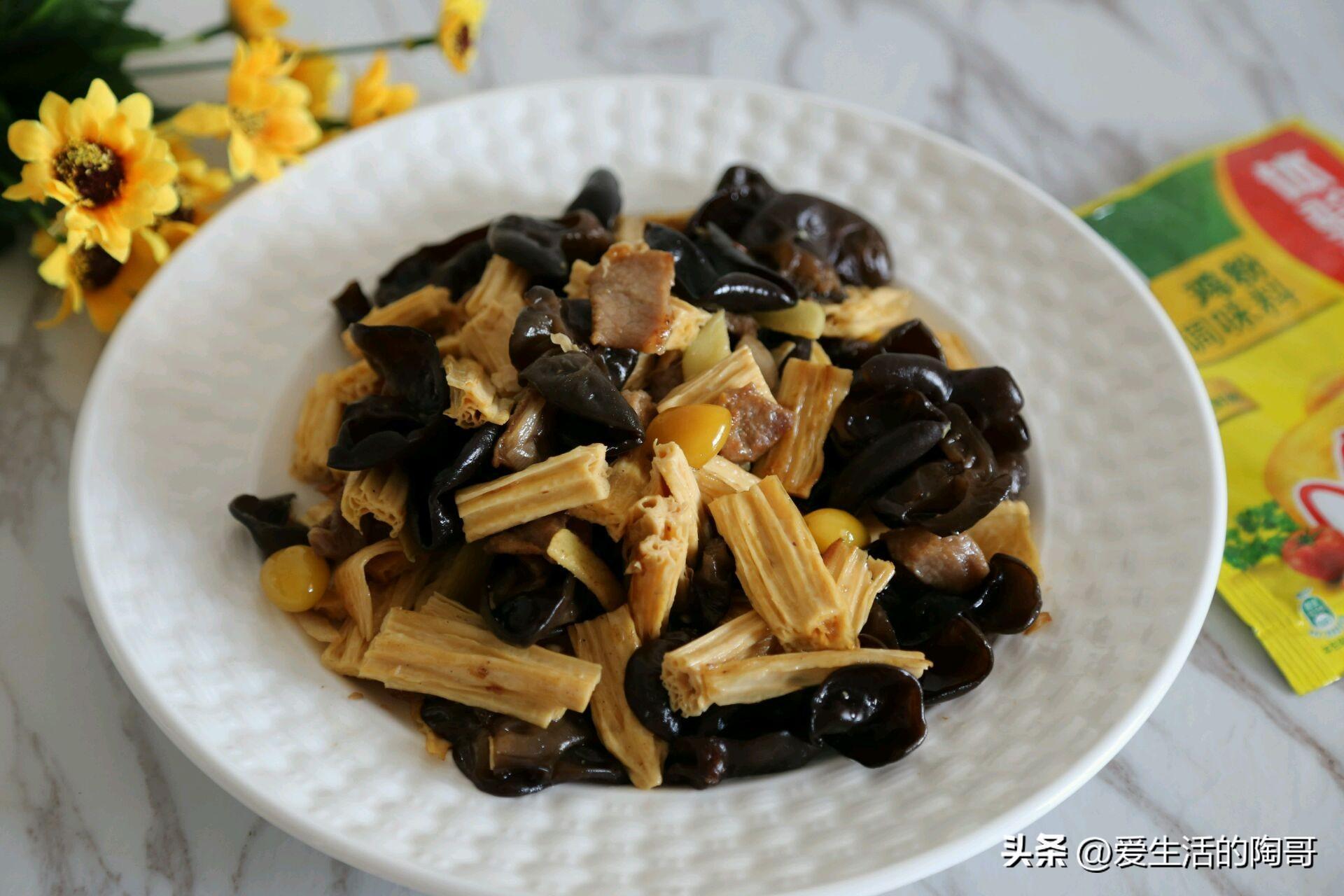 推薦喫法,腐竹炒木耳肉片。木耳是素中之葷,營養豐富,搭配肉片一起炒,葷素搭配,好喫美味。