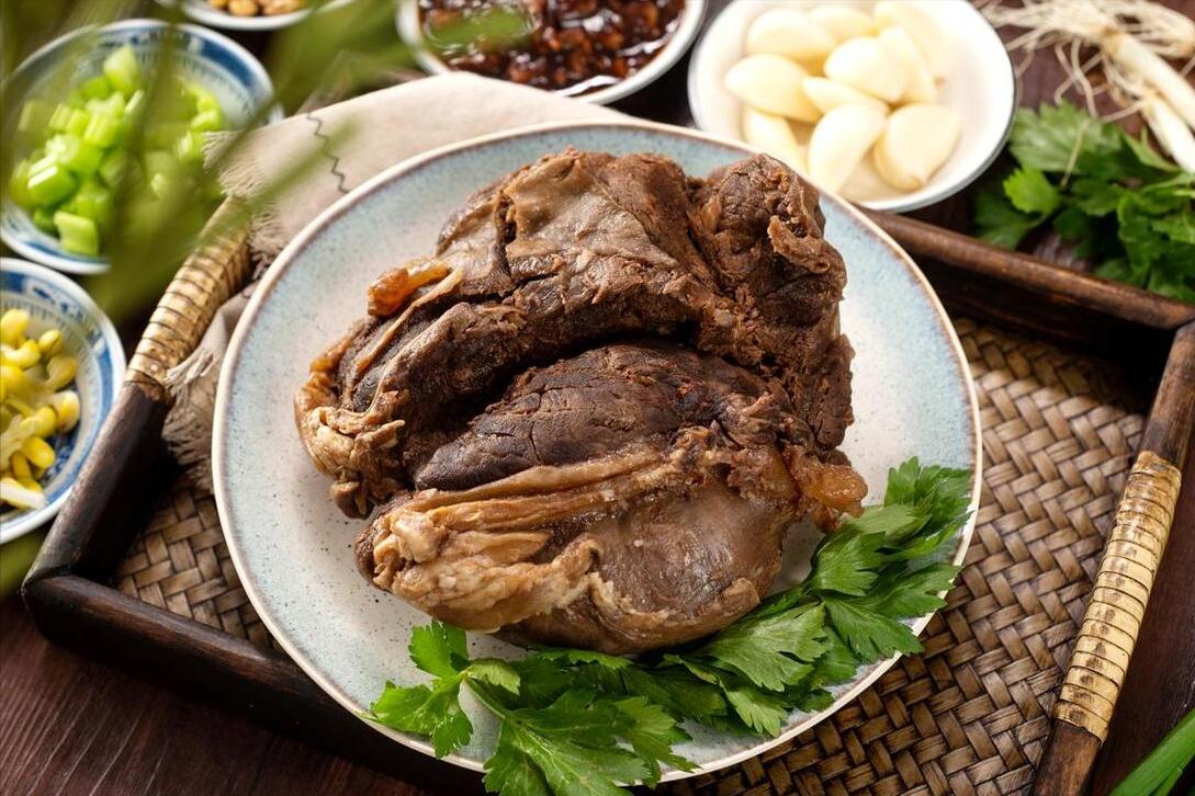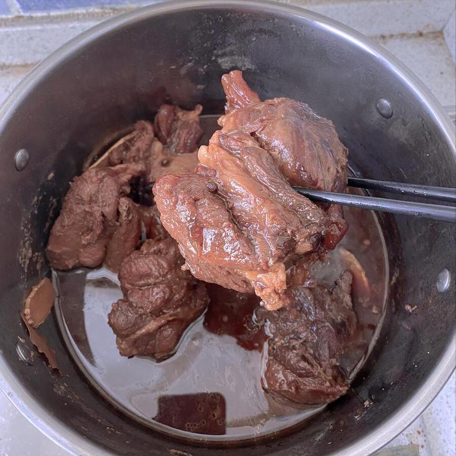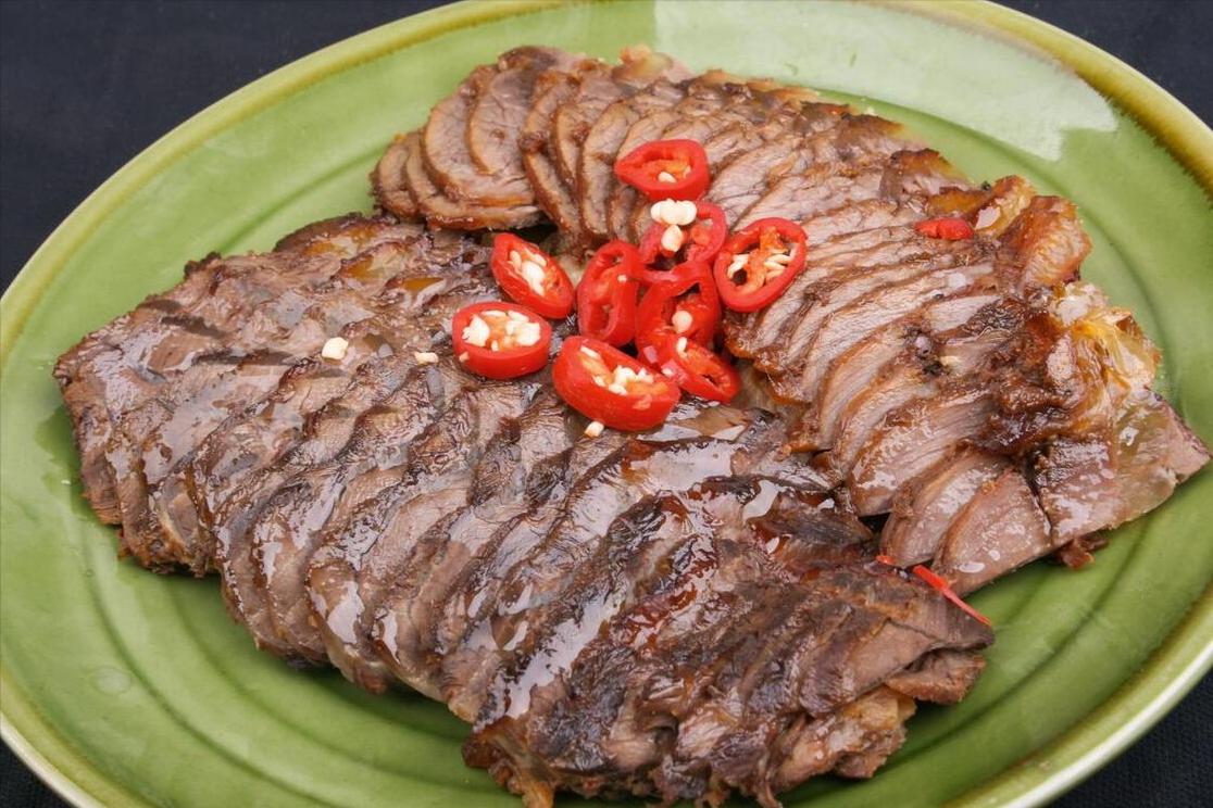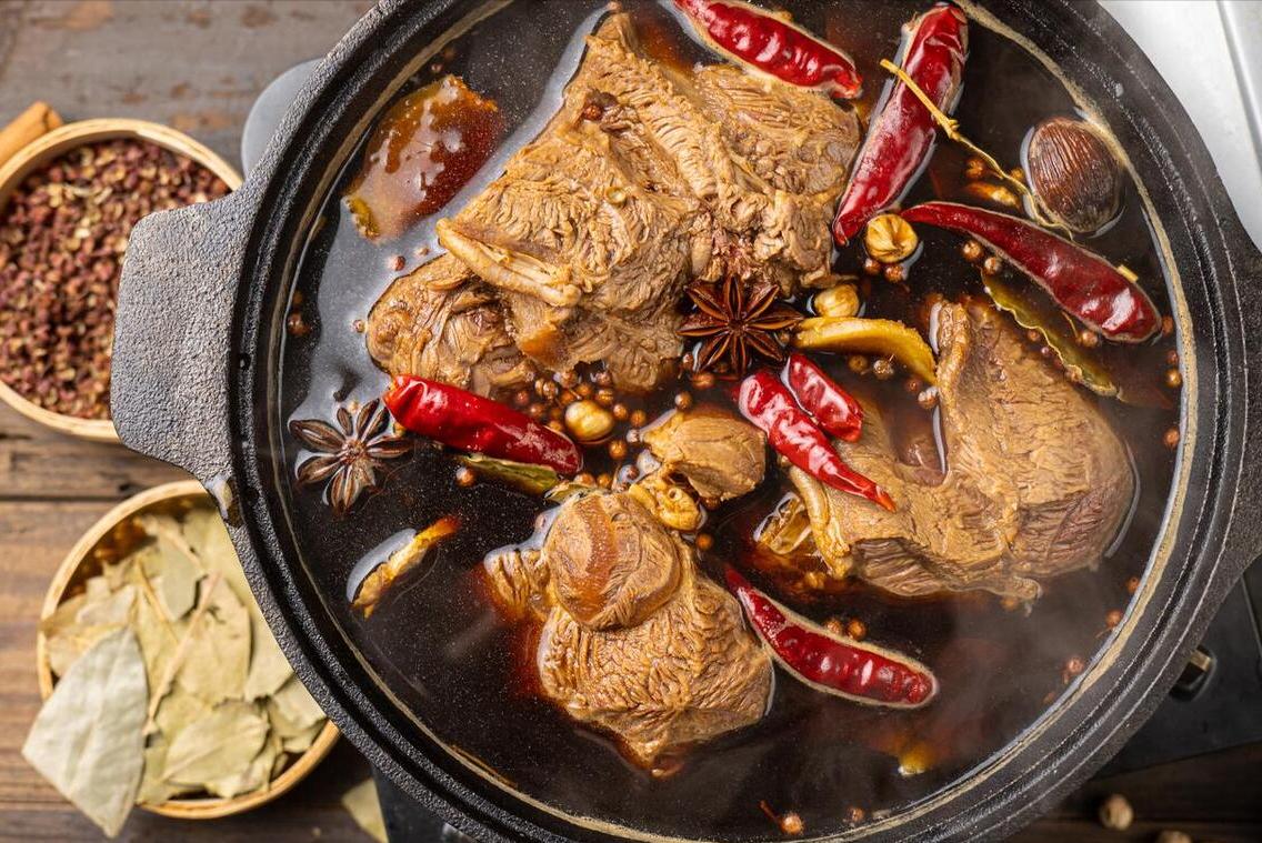 配方:新鮮的牛腱子、八角、香葉、幹辣椒、蔥姜、陳皮、山楂片、甜麪醬、生抽、老抽、鹽