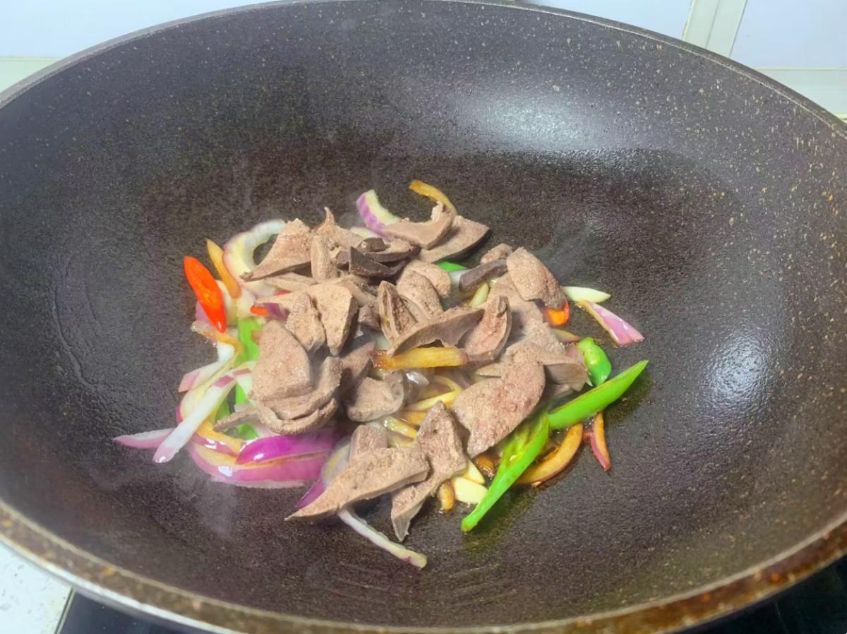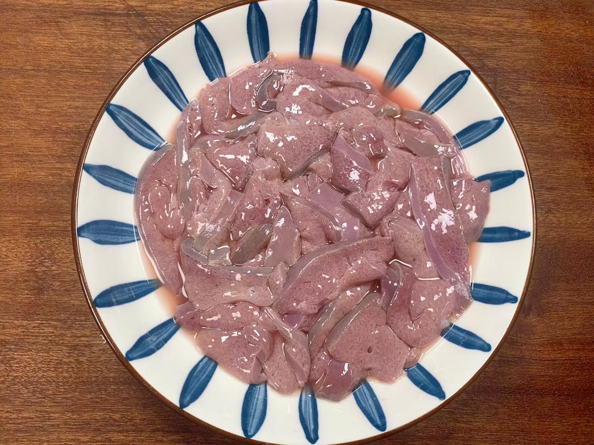 2、豬肝一定要爆炒,炒過火豬肝會發黑髮硬,一點都不滑嫩。
