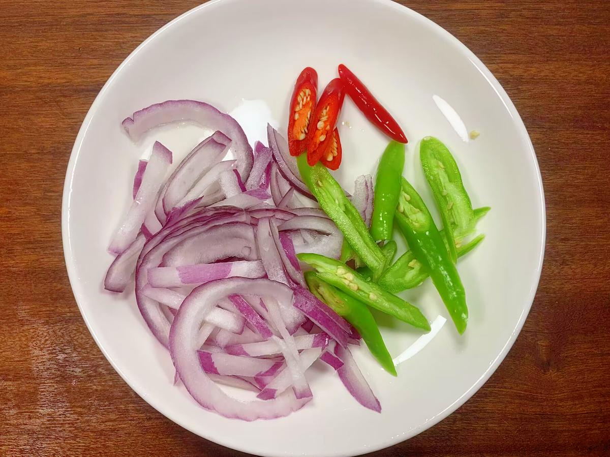 具體做法:1、豬肝喜洋蔥,放一些洋蔥不但可以去除豬肝的腥味,還能增加豬肝的口感。準備半個紫色的洋蔥,剝皮後改刀切成細長條。接下來再準備杭椒和小米椒各2個(能喫辣的可以多放一些),洗乾淨後斜刀切成長條。