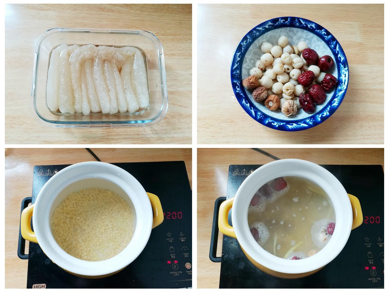 小提示:蓮子提前用高壓鍋煮熟,也可以跟脫皮一起用高壓鍋煮。