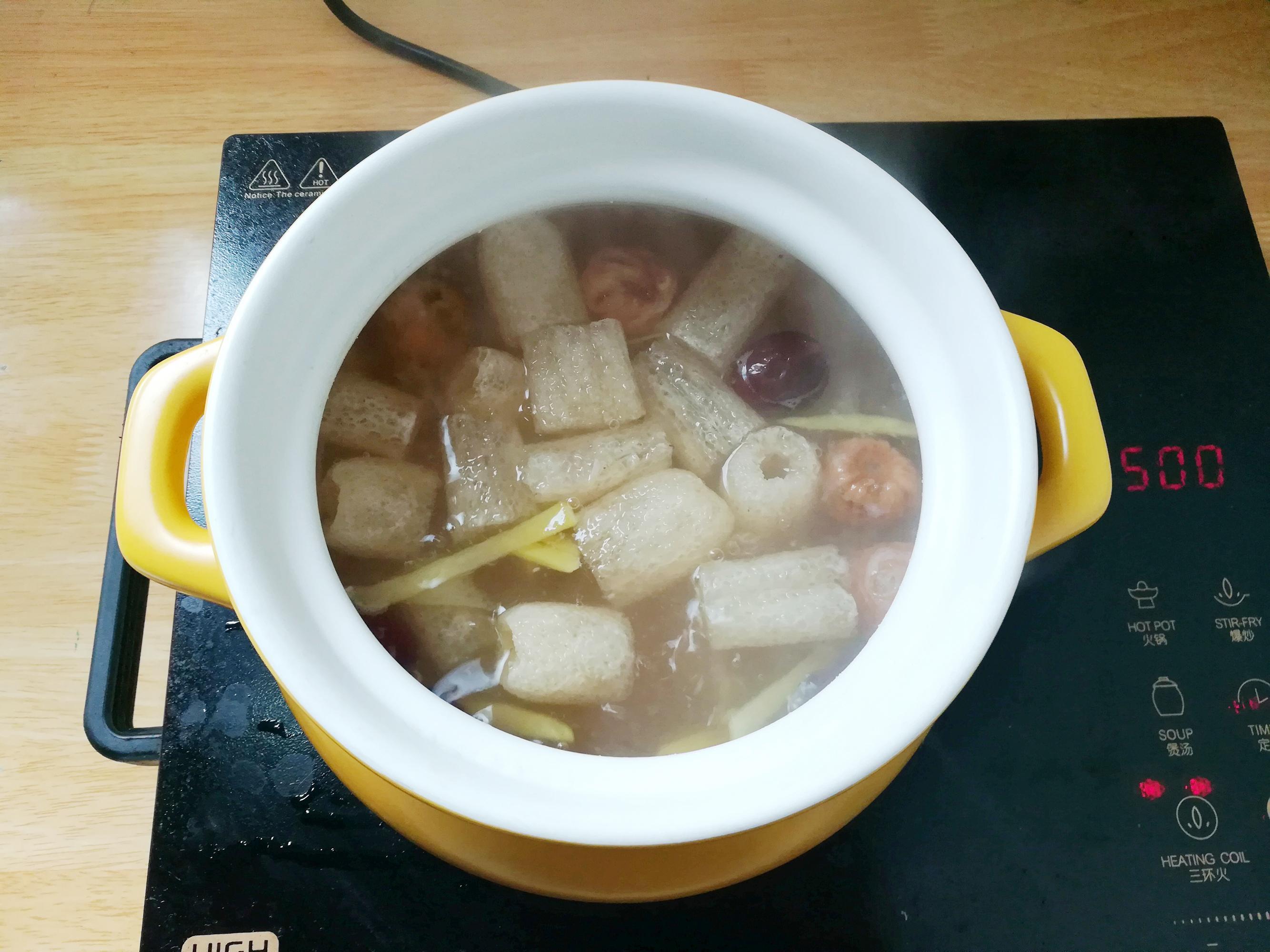 5,加入無花果和竹蓀,中火煮10分鐘,加適量的白砂糖調味料。