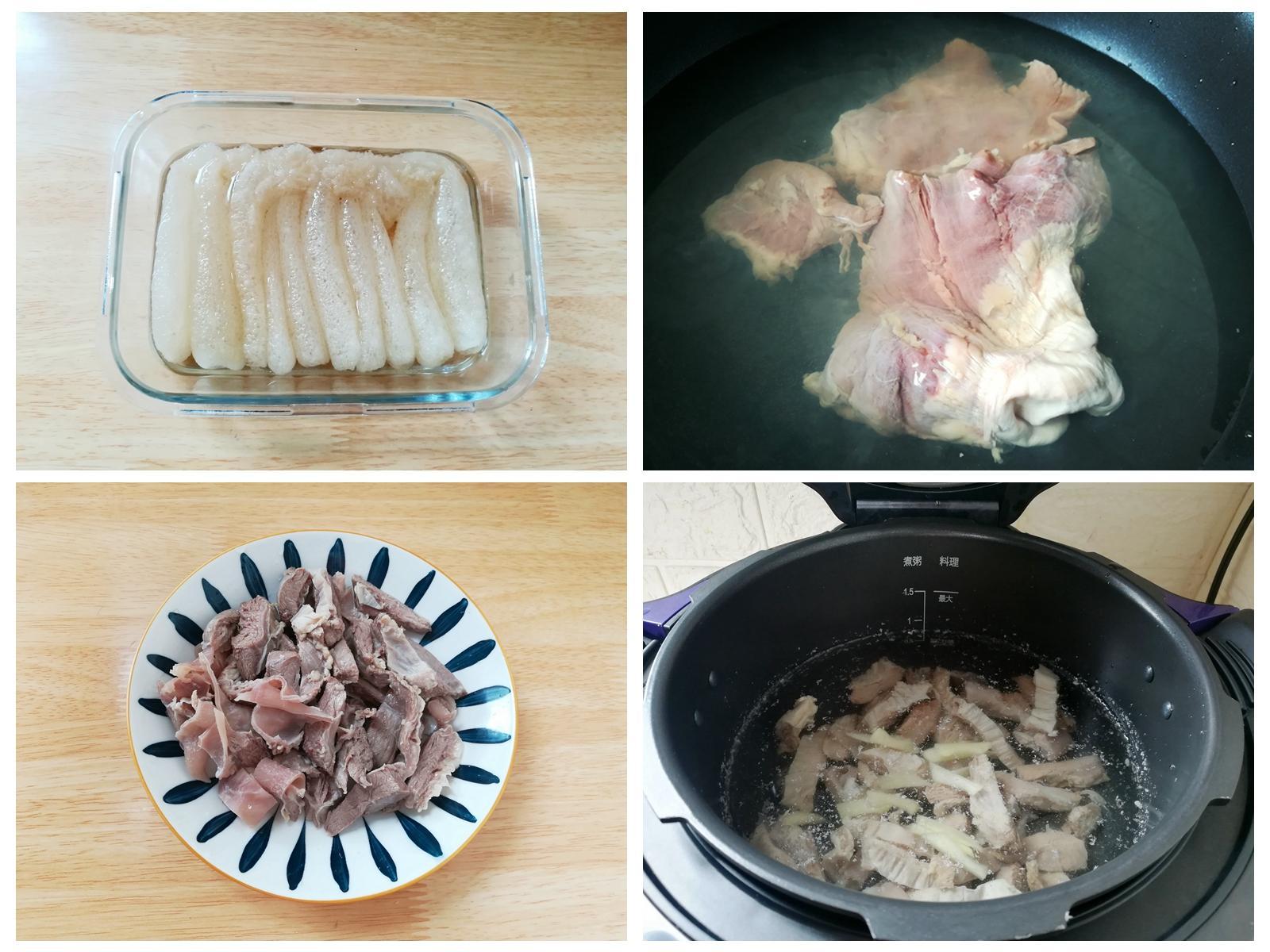 3,護心肉和薑絲一起放入電壓力鍋中,選擇煲湯程序,大約25分鐘。