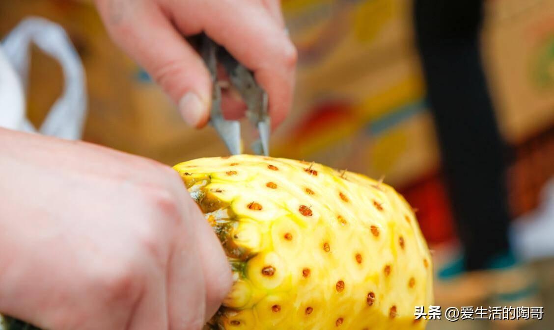 在生喫菠蘿之前, 最好把菠蘿用淡鹽水浸泡,破壞菠蘿本身的蛋白酶,人體生喫起來更加健康。