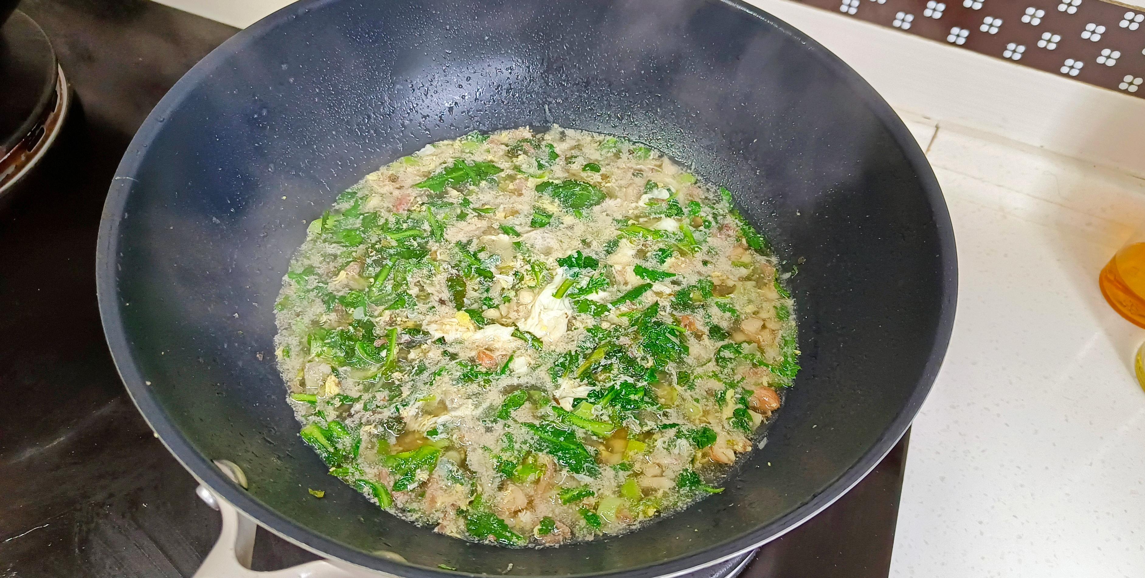 做苦菜湯時,先加入一把花生碎炒香,是苦菜湯鮮香好喫的關鍵,而且它還可以中和苦菜的苦味,喫在嘴裏越嚼越香,讓你回味無窮!