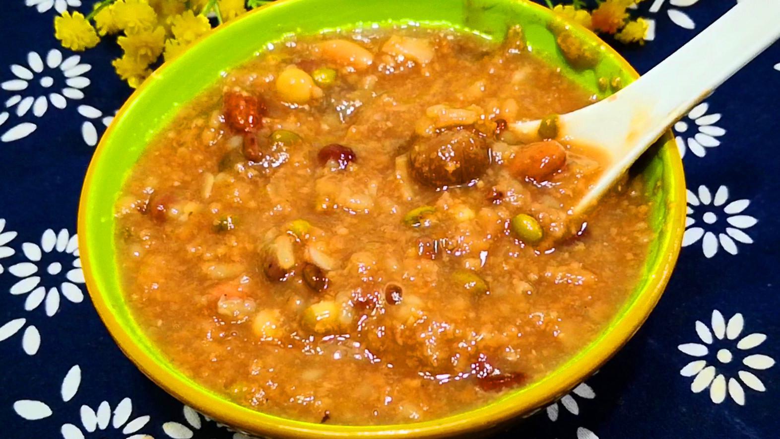 說到清明粥,在我們山東這比較流行,也叫寒食粥,而且我們這裏還有施粥的習俗。清明和寒食兩節相鄰,因此唐代以後,清明節又稱“寒食清明”,清明節前幾天,農村老人就會把玉米、高粱、小麥等放在堆臼裏反覆搗,進行脫殼,等到清明這一天加上紅小豆、豌豆、花生米和大棗等熬成的粥,民間認爲清明節喝清明粥,一年都身體安康、無災無害,不受“外邪”侵襲,家業隨之興旺發達。