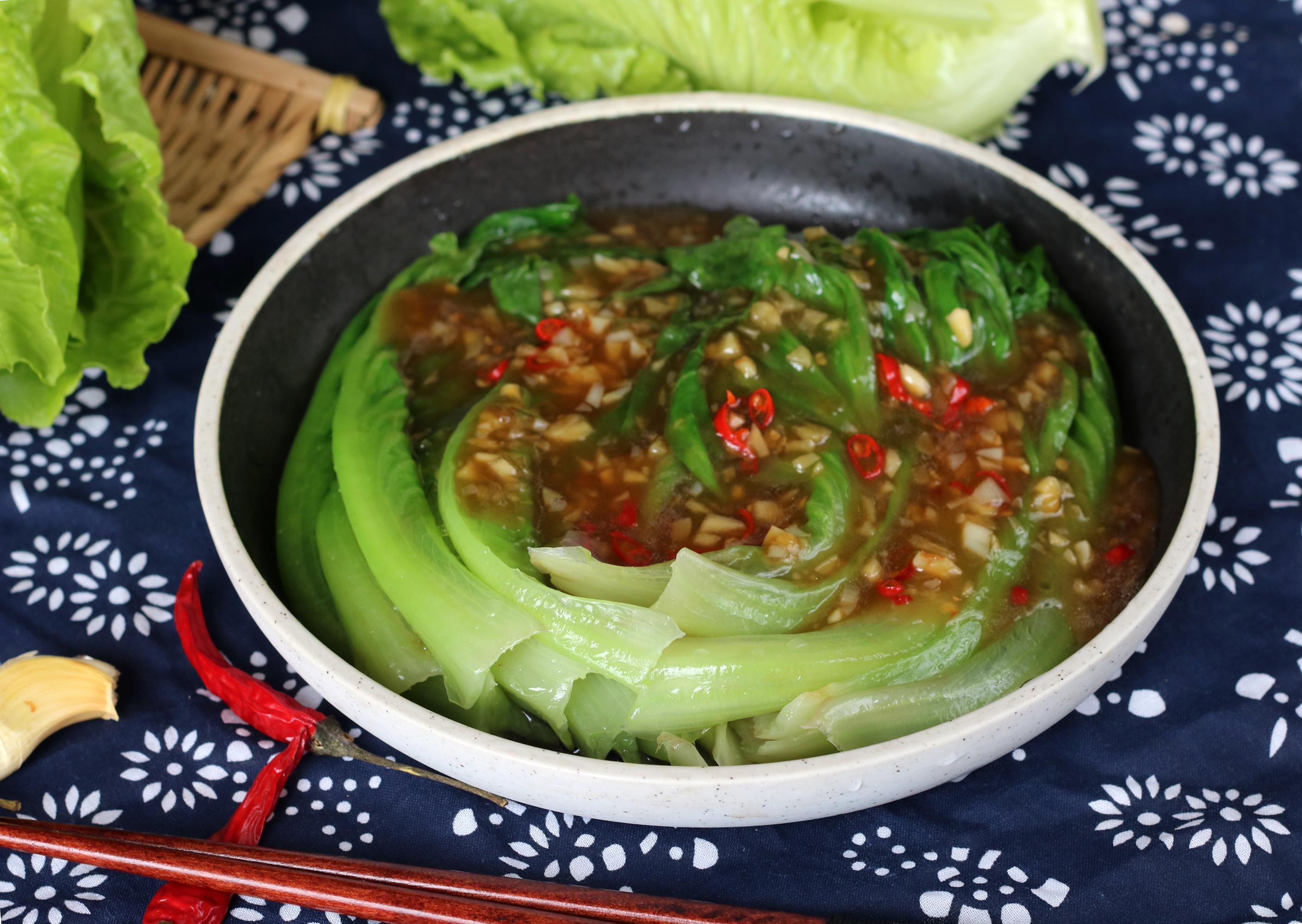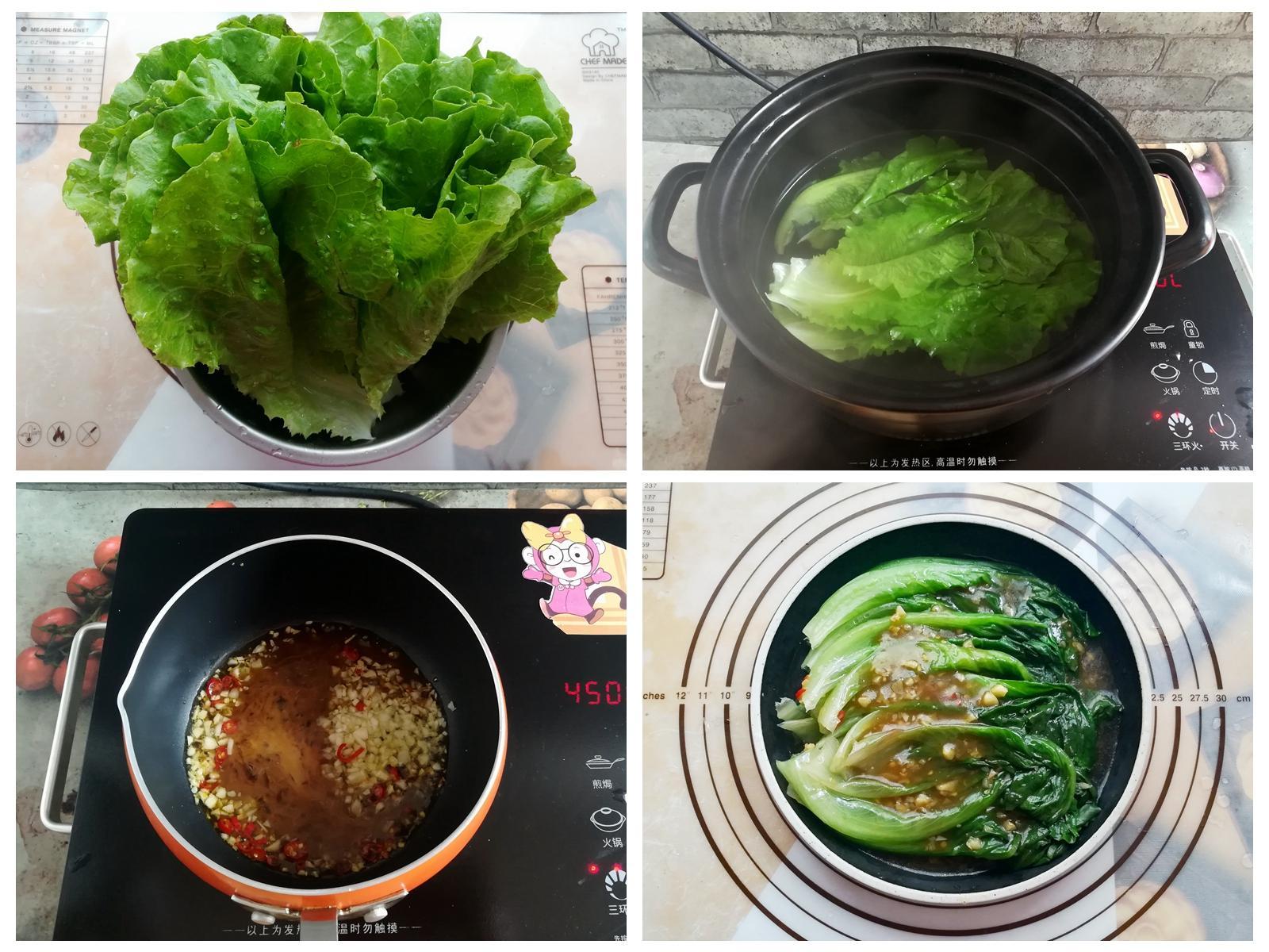 做法:1,生菜清洗乾淨,瀝一下水分,燒一鍋熱開水,放入幾滴油和半勺鹽,放入生菜燙到斷生,撈出來過涼水。
